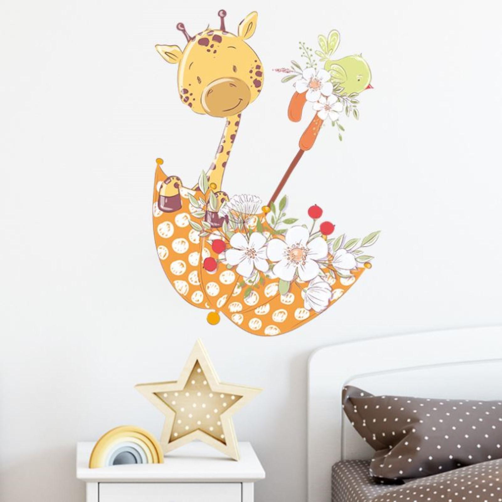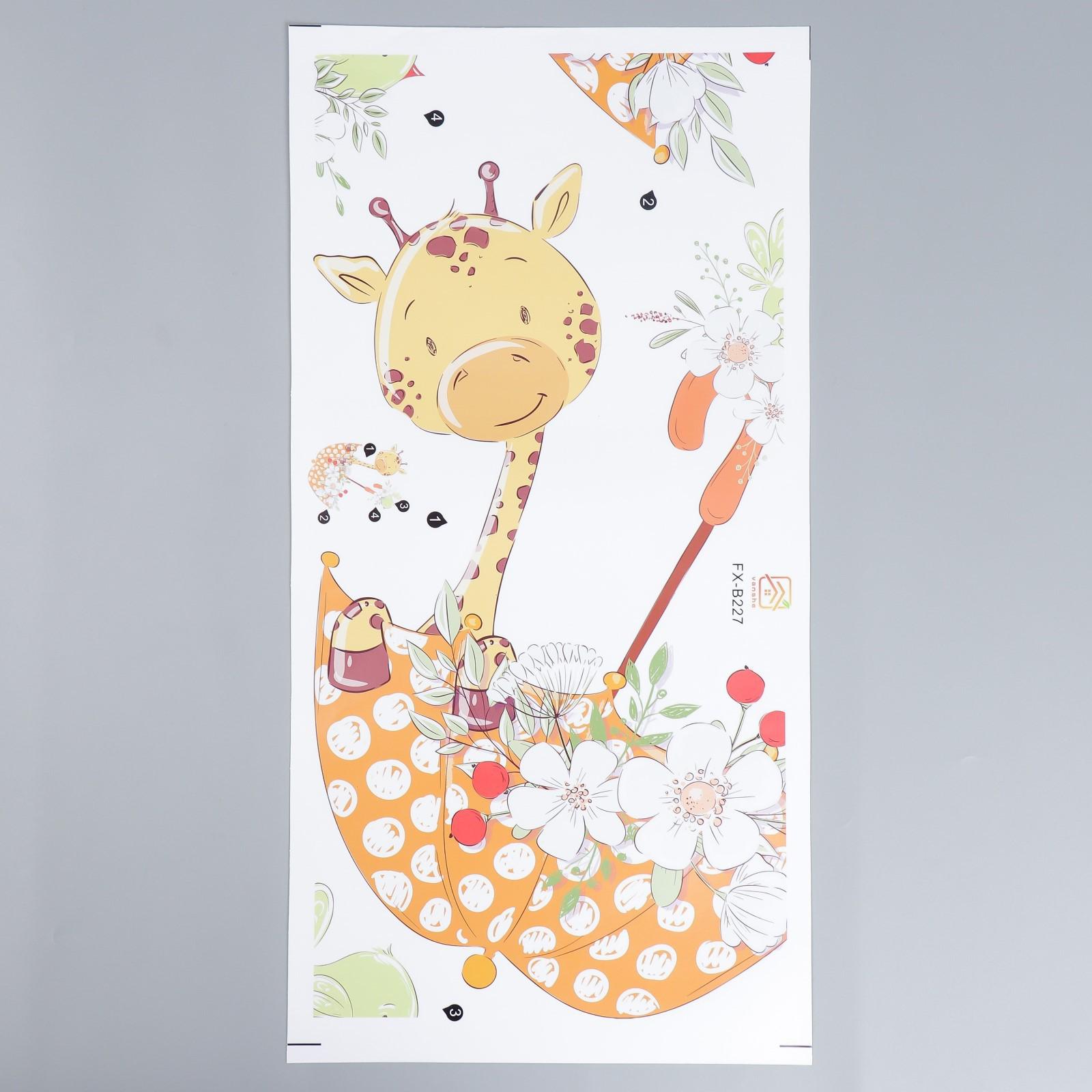 Наклейка пластик интерьерная цветная "Жирафик в зонтике с цветами" 30х60 см
