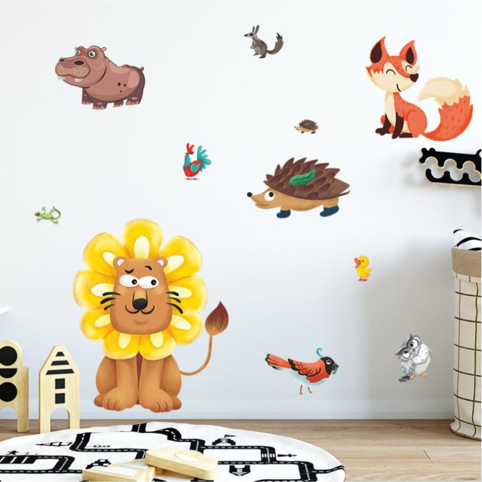 Наклейка пластик интерьерная цветная "Смешные звери" 30х90 см