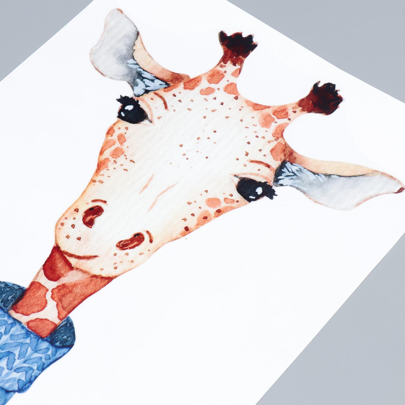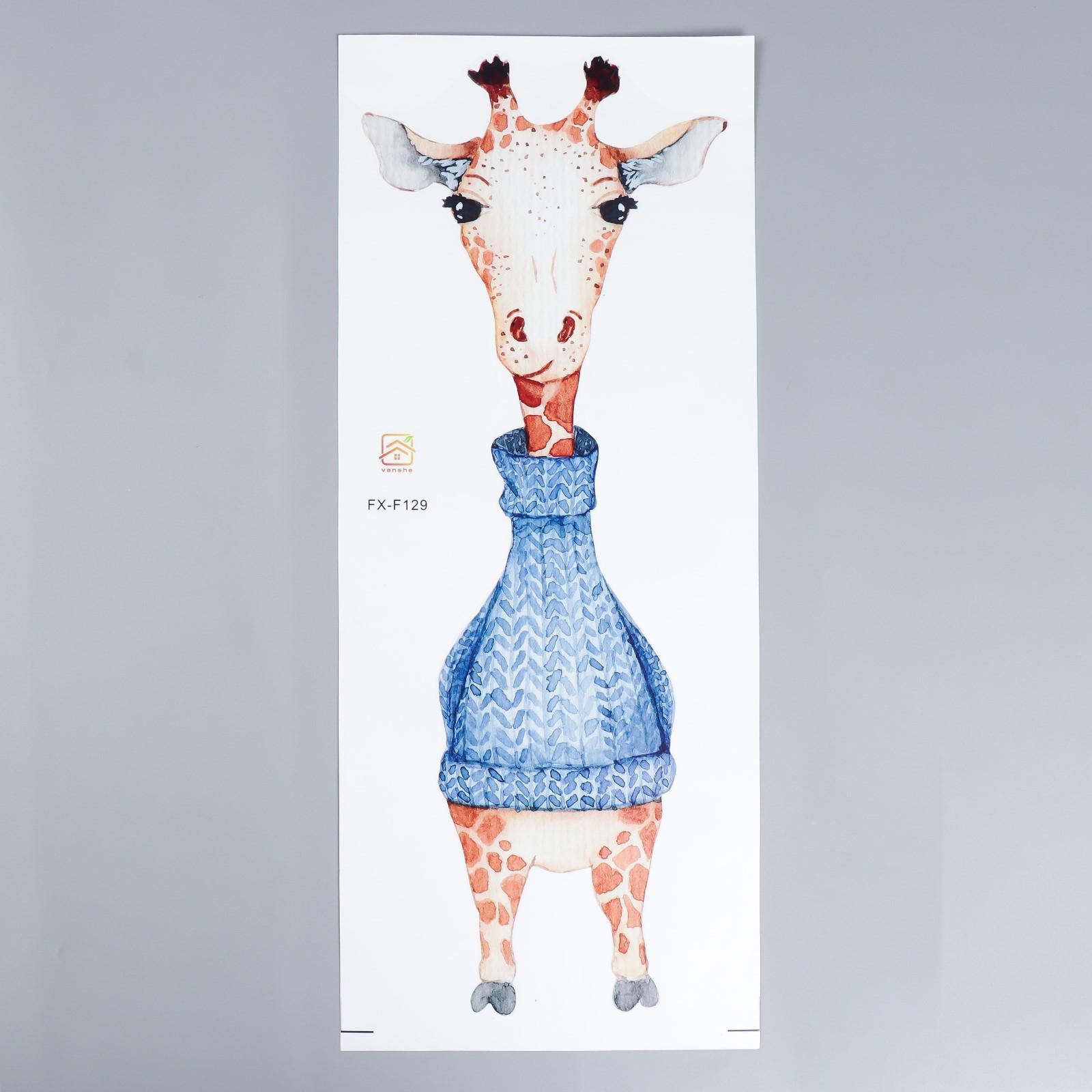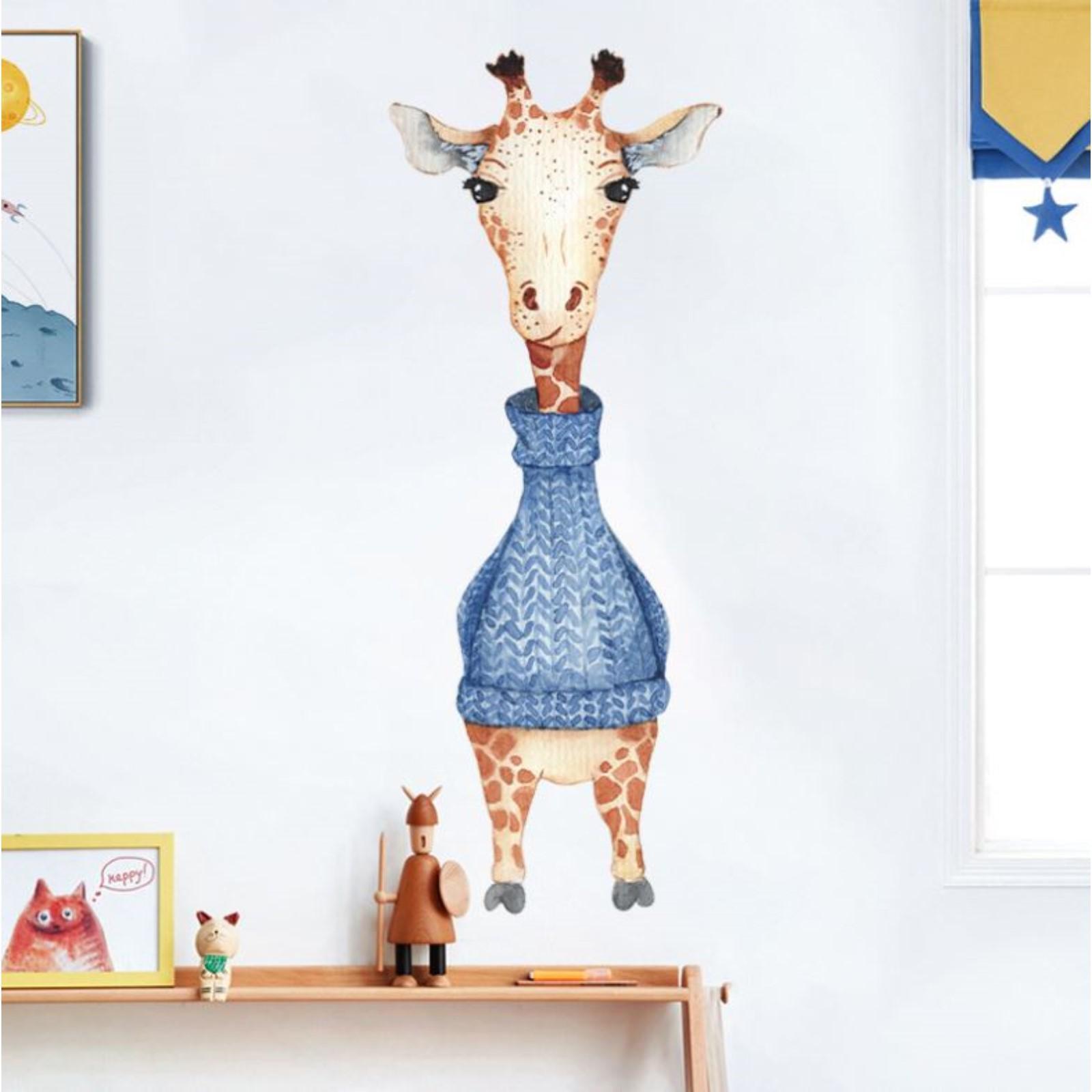 Наклейка пластик интерьерная цветная "Жираф в синем свитере" 59х25 см