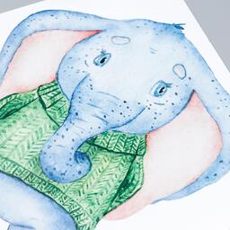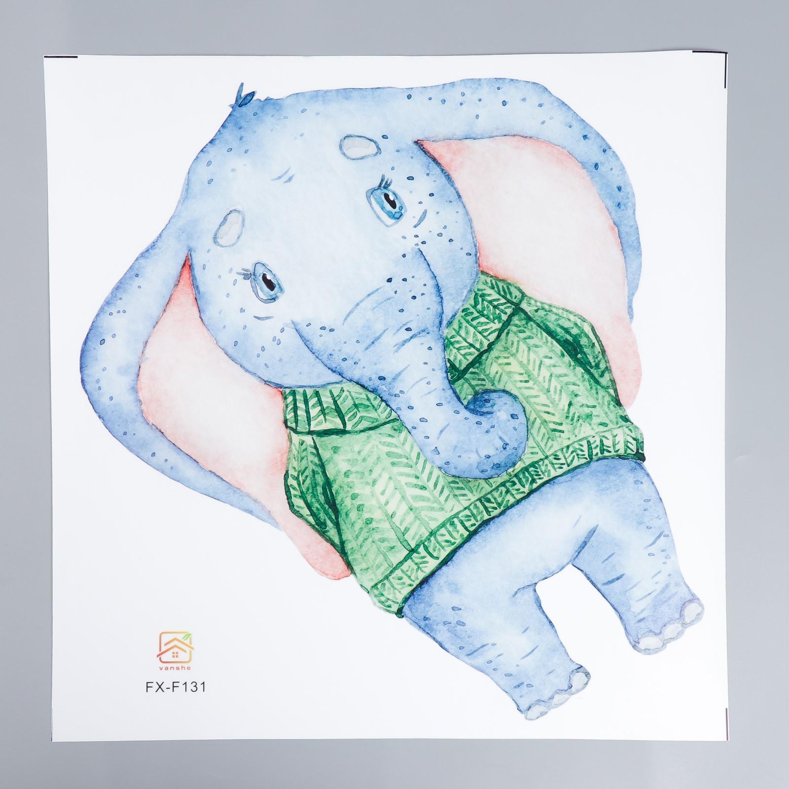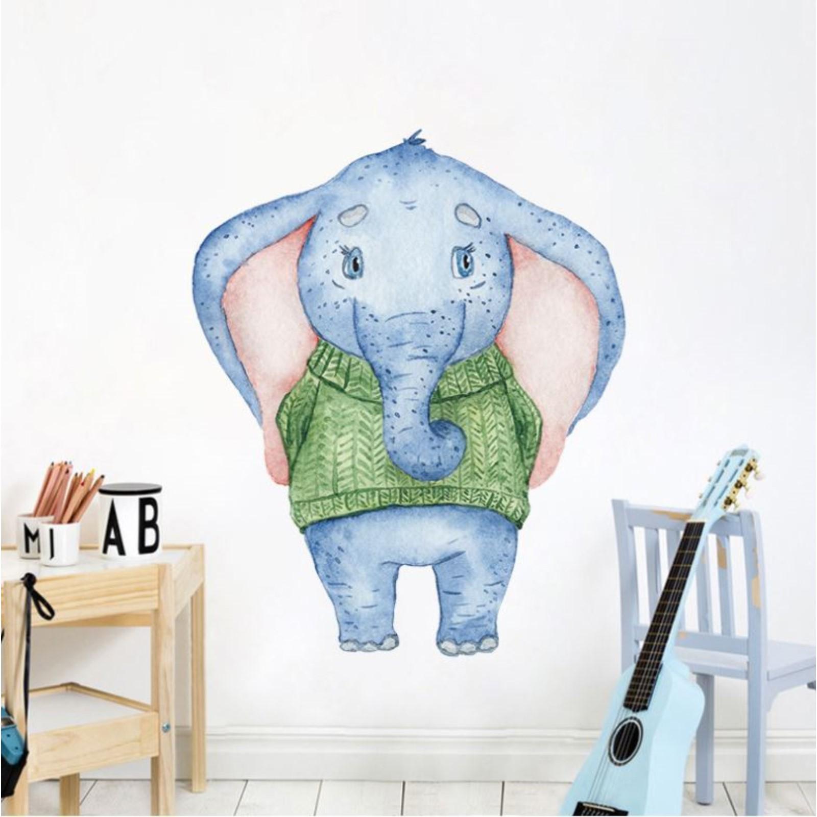 Наклейка пластик интерьерная цветная "Слонёнок в зелёном свитере" 40х39 см