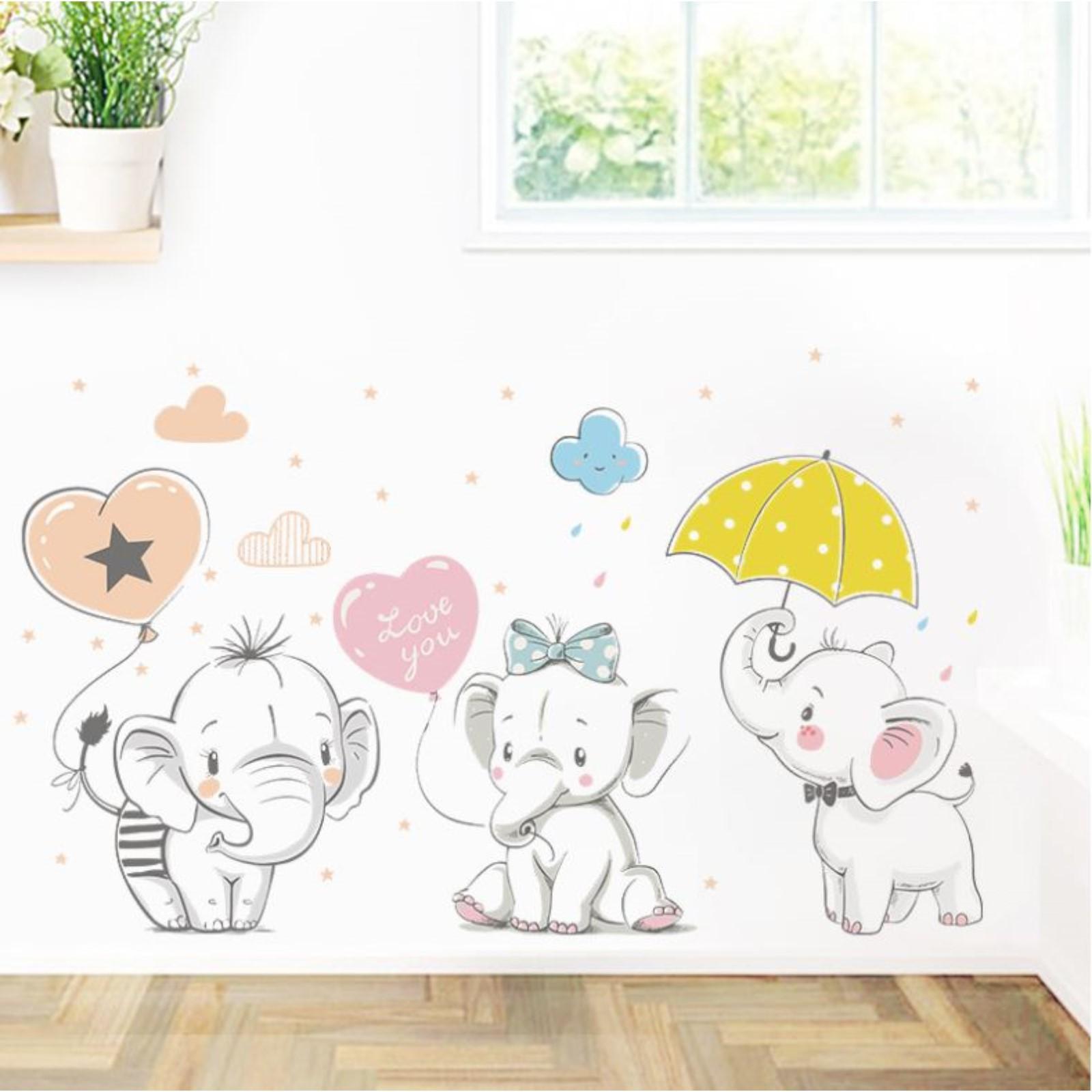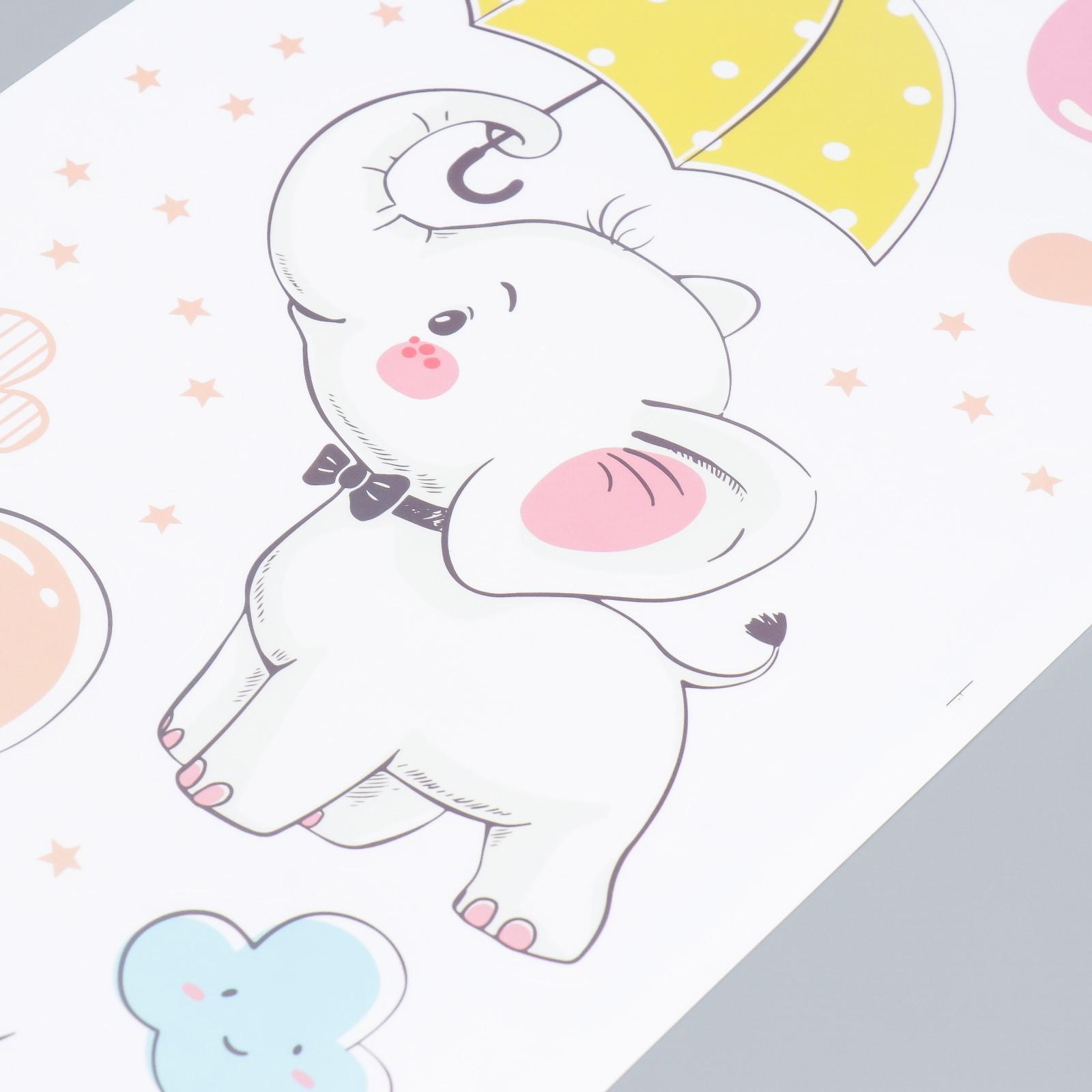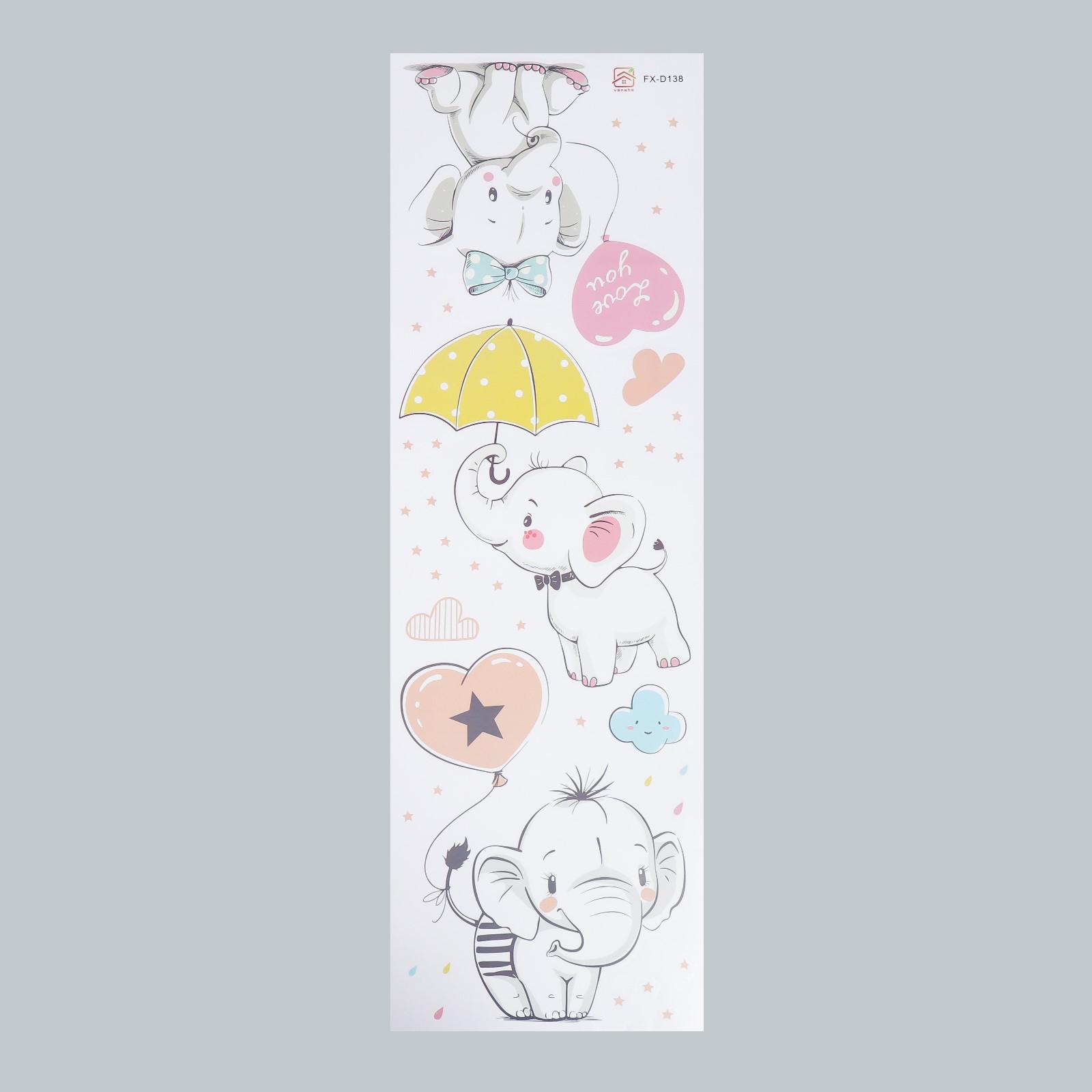 Наклейка пластик интерьерная цветная "Слонята с воздушными шариками" 30х90 см