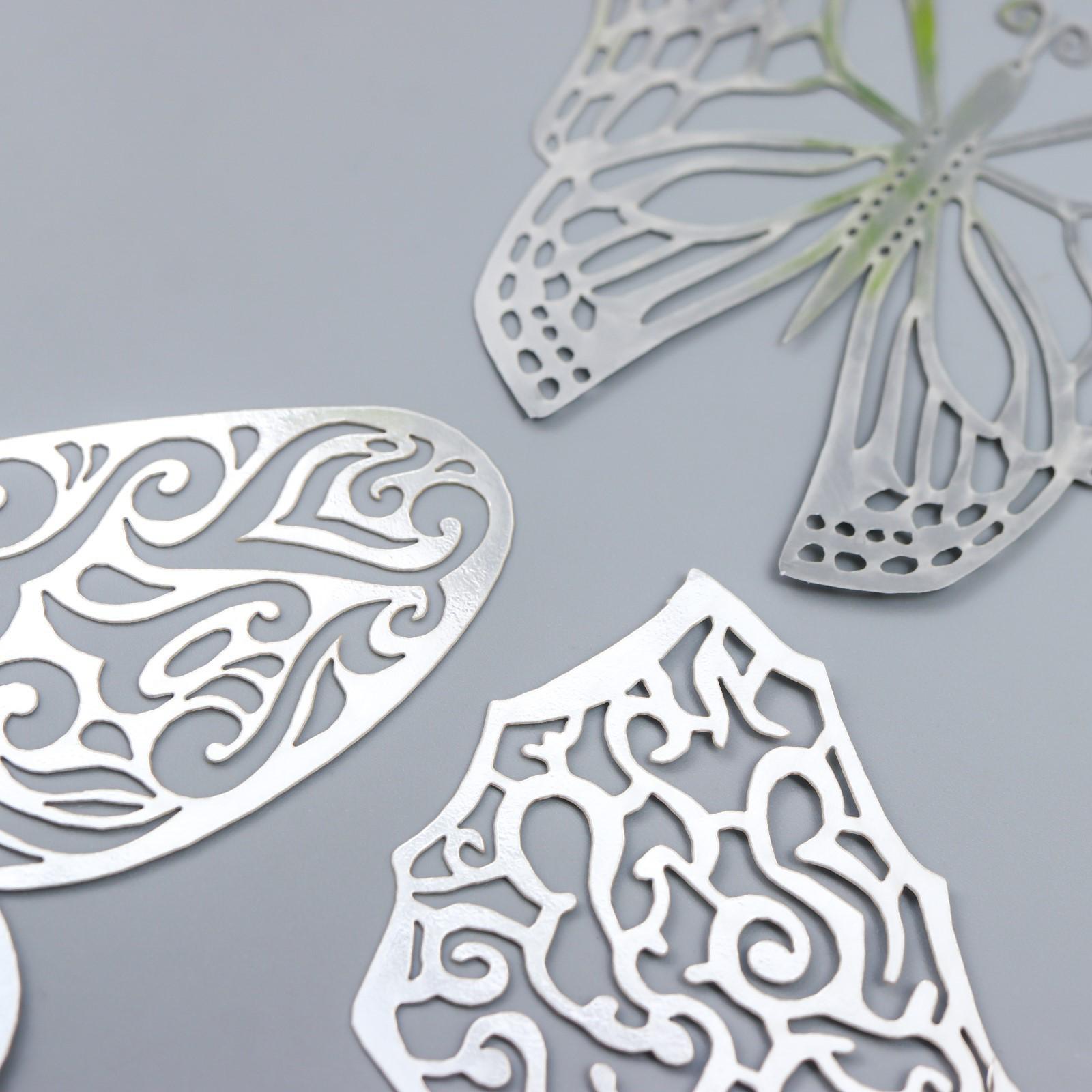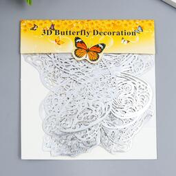 Наклейка пластик "Бабочки серебро ажурная" набор 12 шт 12 см, 10 см 8 см