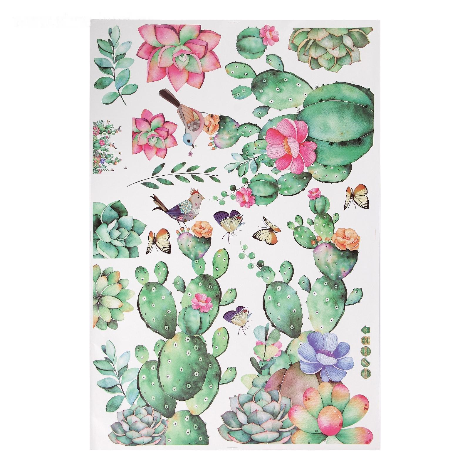 Наклейка пластик интерьерная "Суккуленты" 60х90 см
