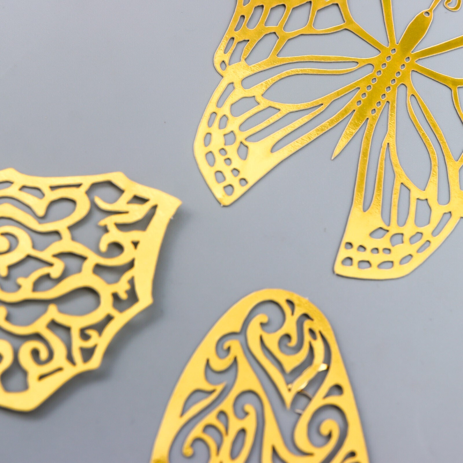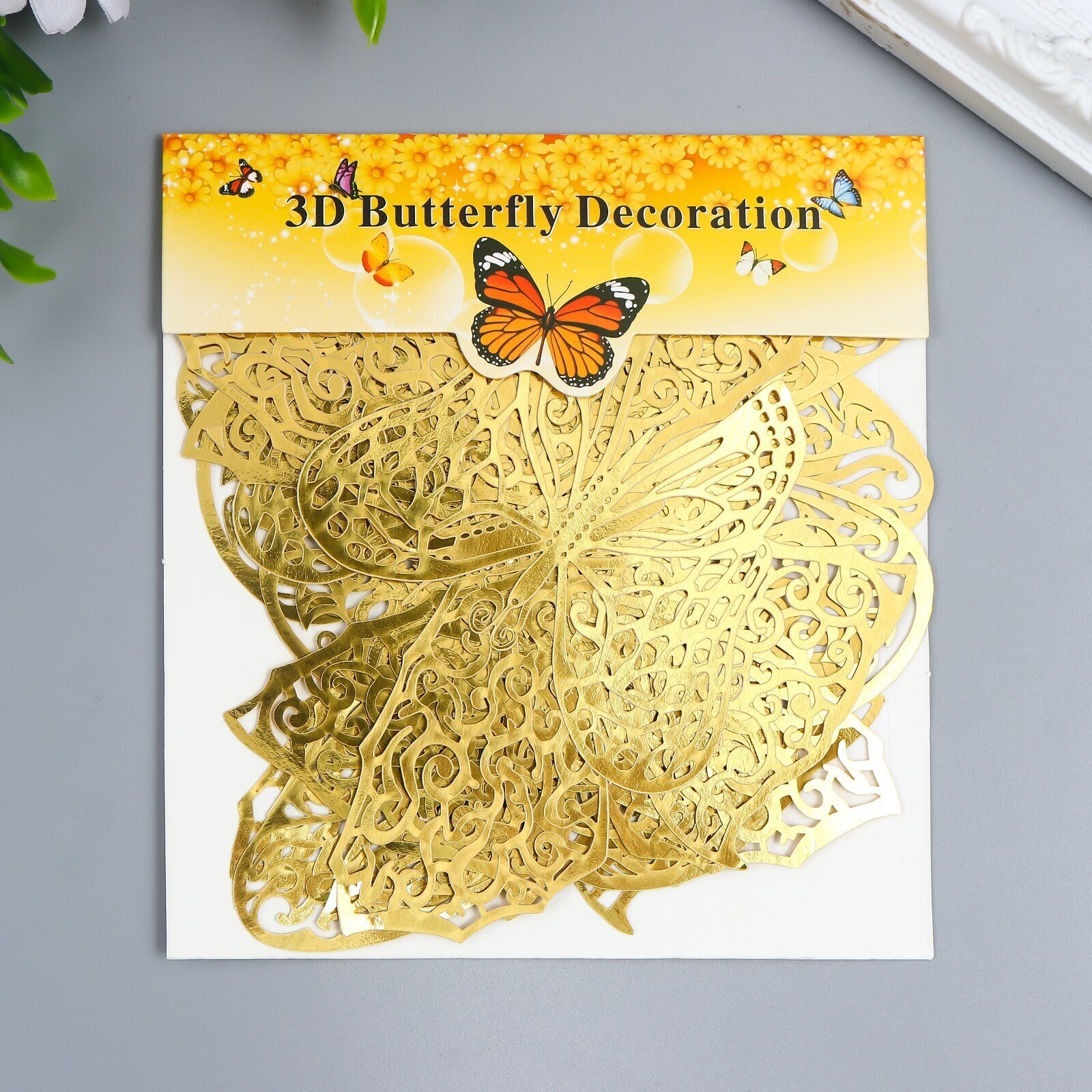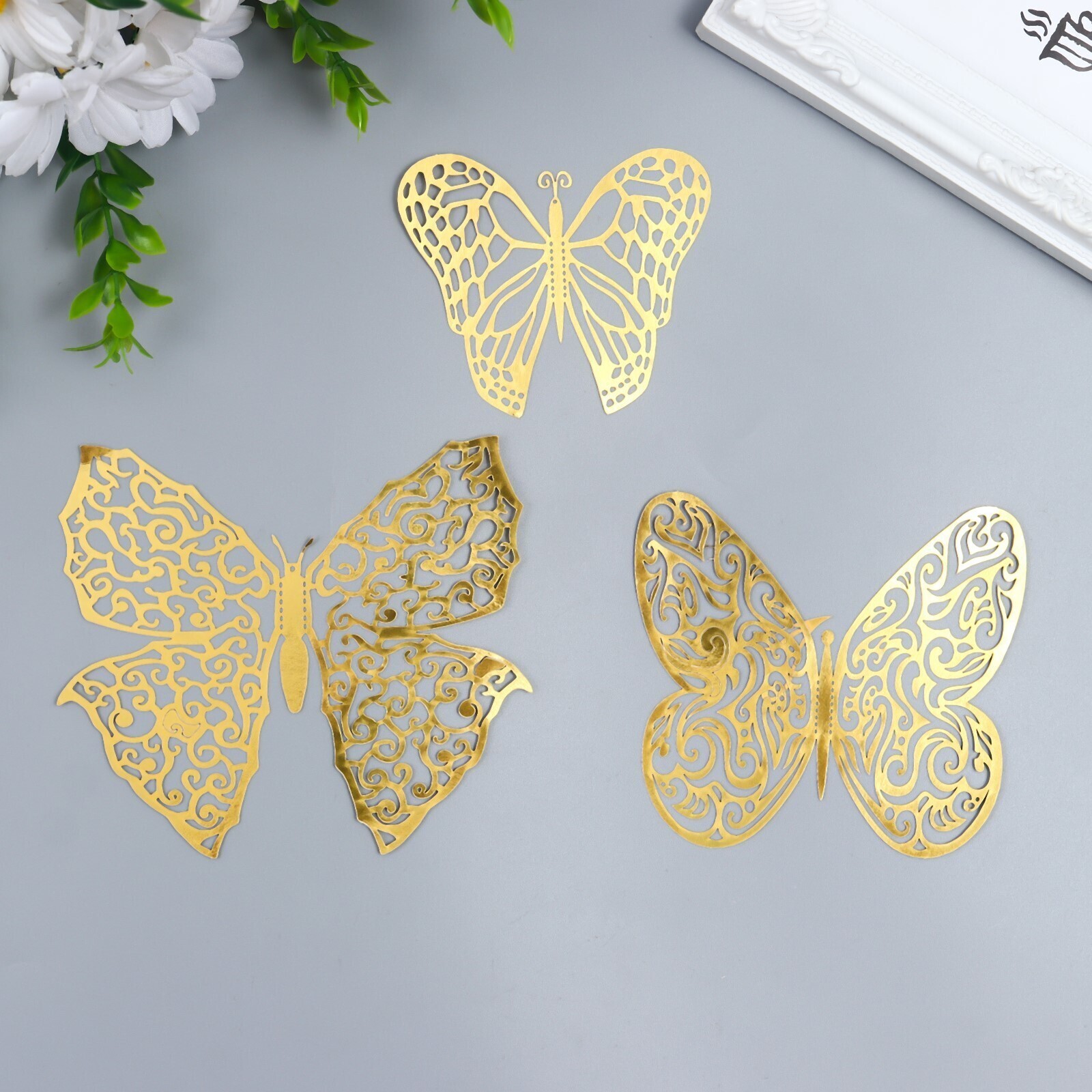 Наклейка пластик "Бабочки золото ажурная" набор 12 шт 12 см, 10 см 8 см