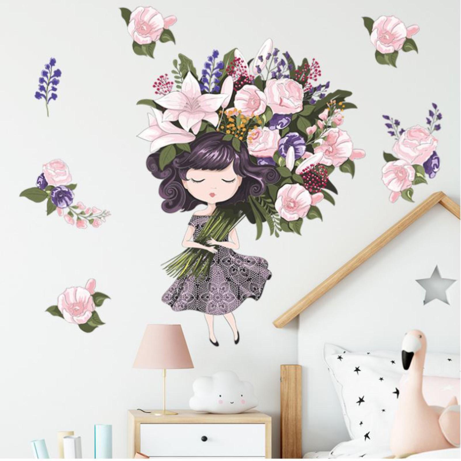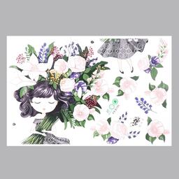 Наклейка пластик интерьерная цветная "Малышка с огромным букетом" 40х60 см