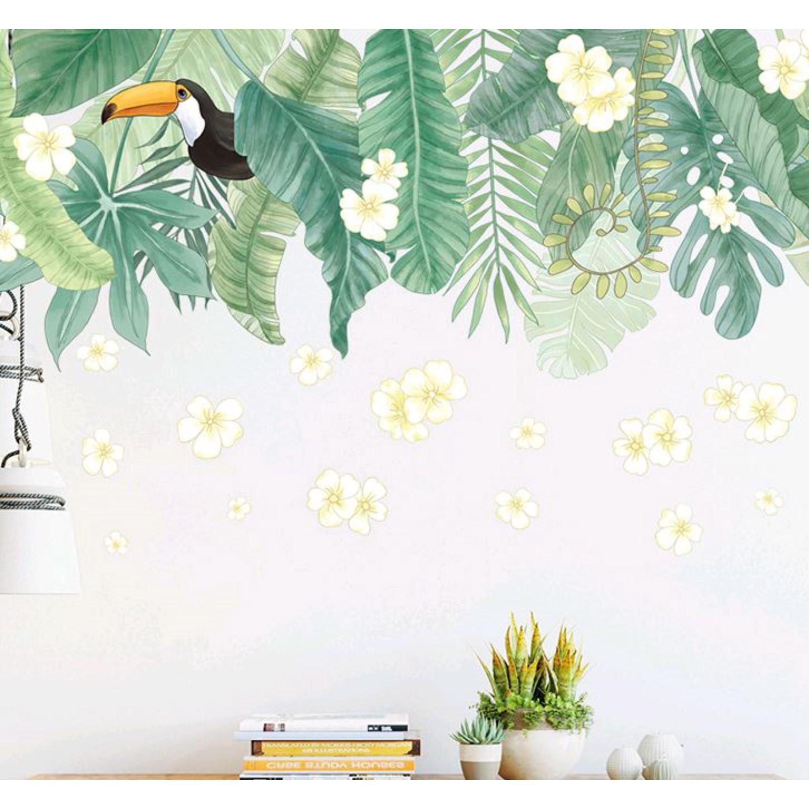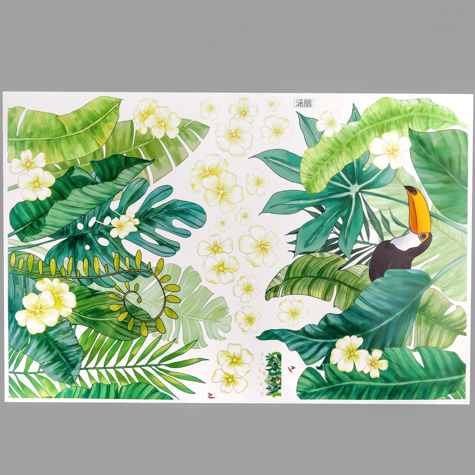 Наклейка пластик интерьерная цветная "Тукан в пальмовых листьях" 60х90 см