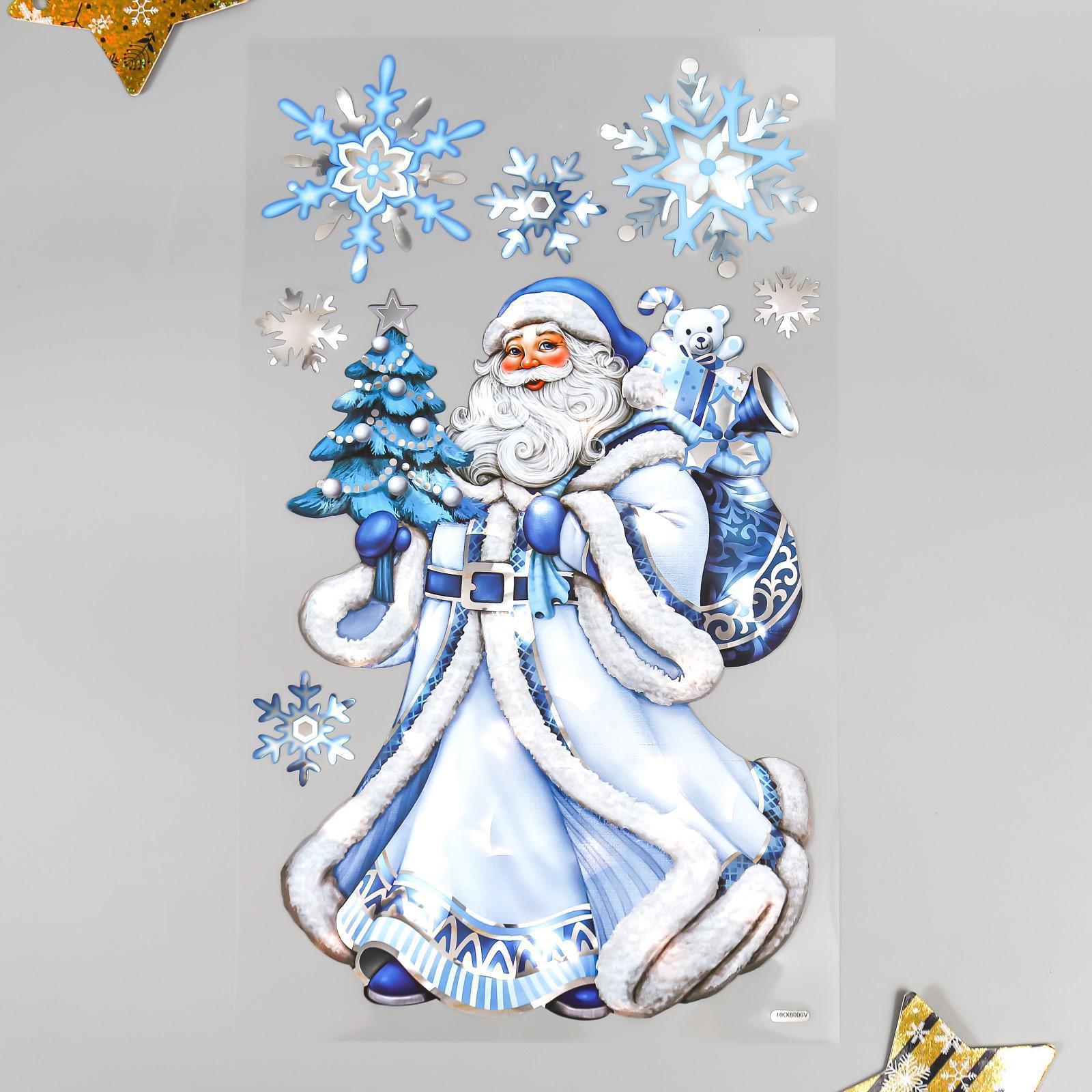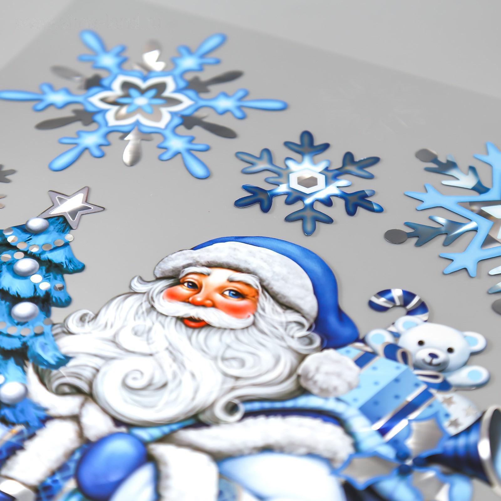 Наклейки- голограммы Room Decor "Дед Мороз с ёлочкой" 24х41 см