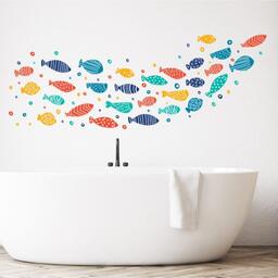 Наклейка пластик интерьерная цветная "Стая рыбок" 30х90 см