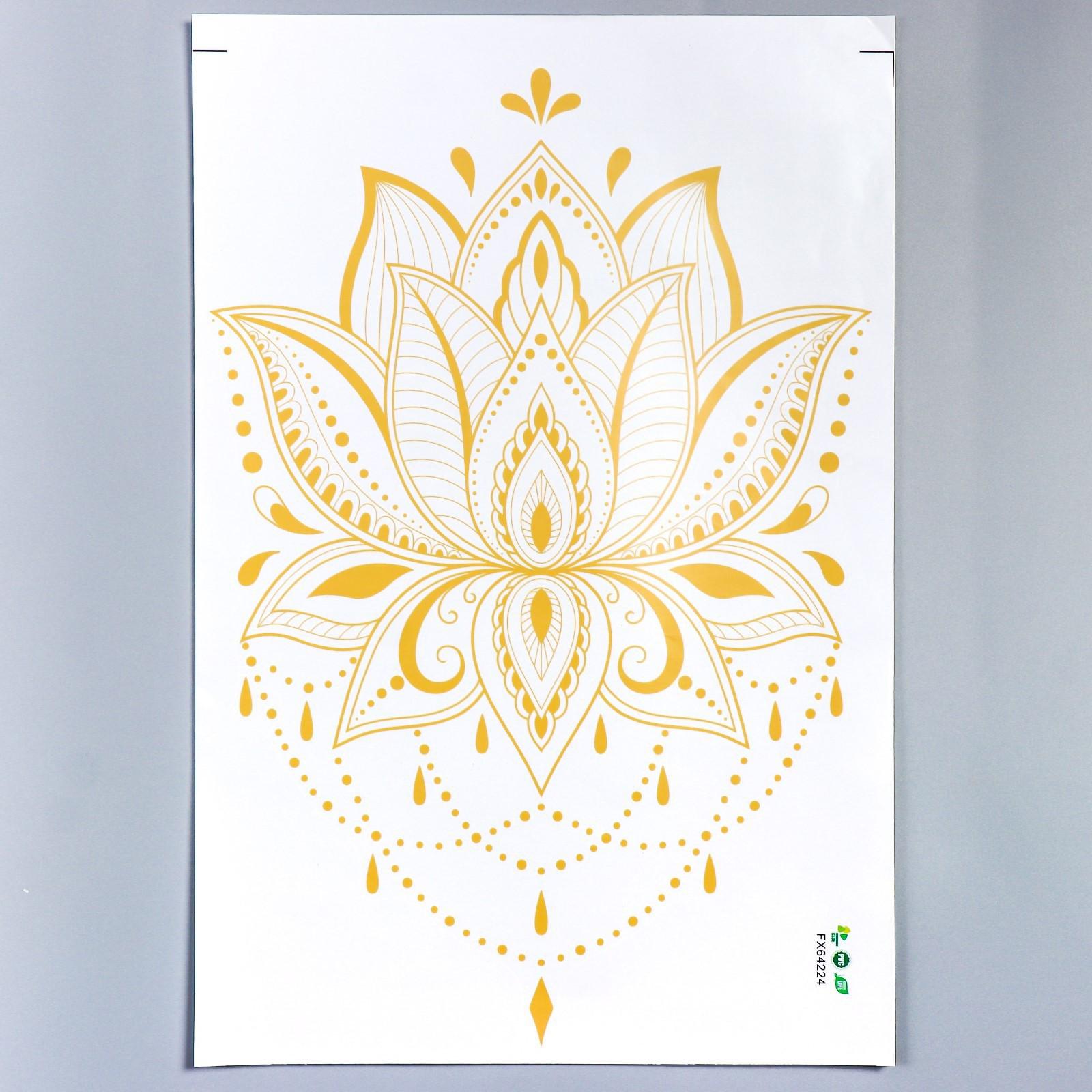 Наклейка пластик интерьерная золото "Цветок лотоса" 40х60 см
