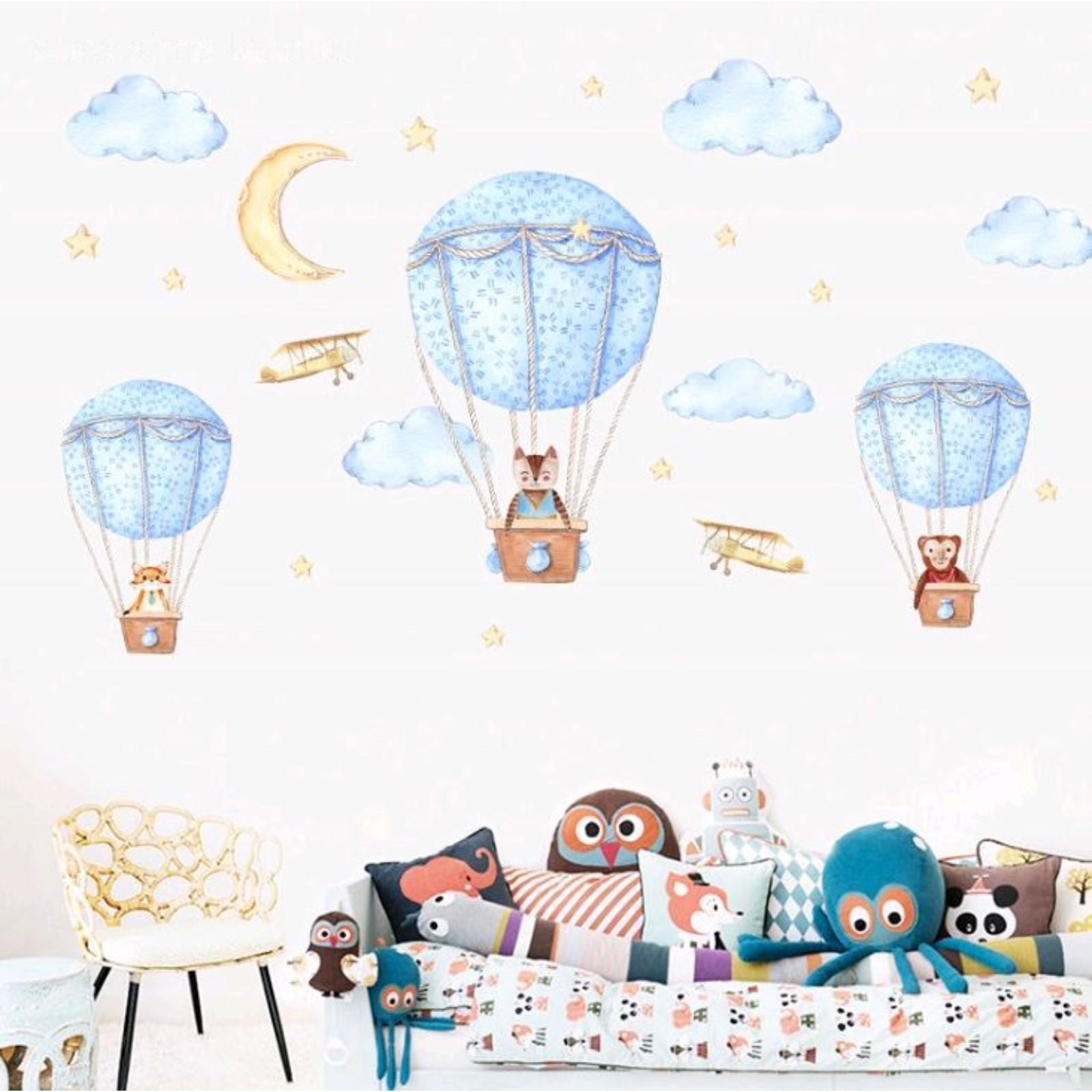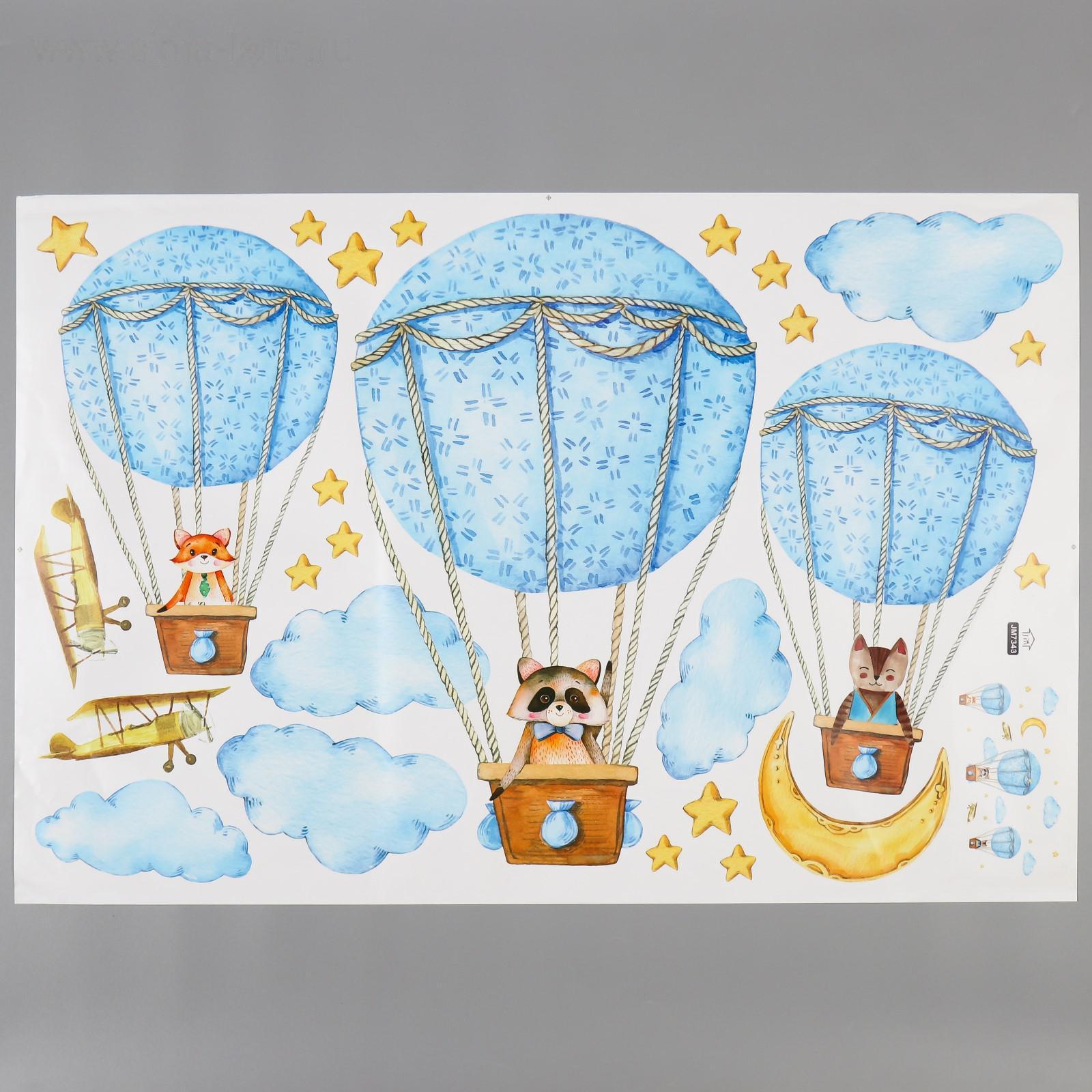 Наклейка пластик интерьерная цветная "Воздушные шарики с зверятами" 60х90 см