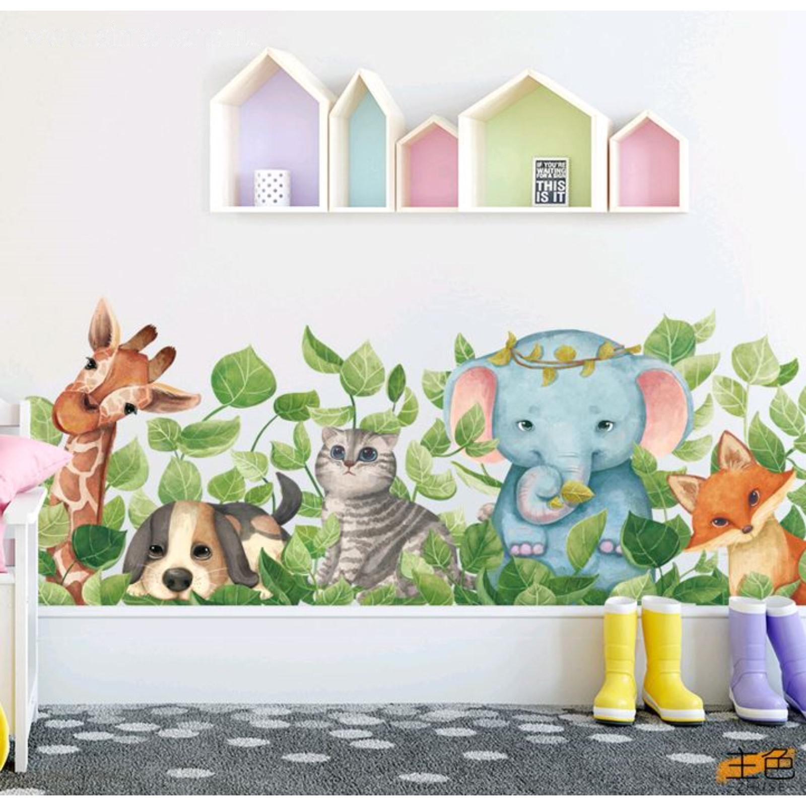 Наклейка пластик интерьерная "Зверята в траве"набор 2 листа 30х75 см