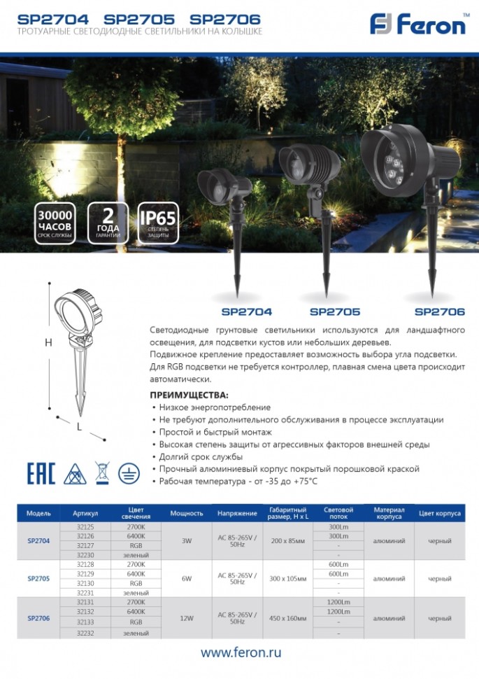 Витринный образец! <176150> Светодиодный светильник тротуарный (грунтовый) Feron SP2704 3W 6400K 85-265V IP65 32126