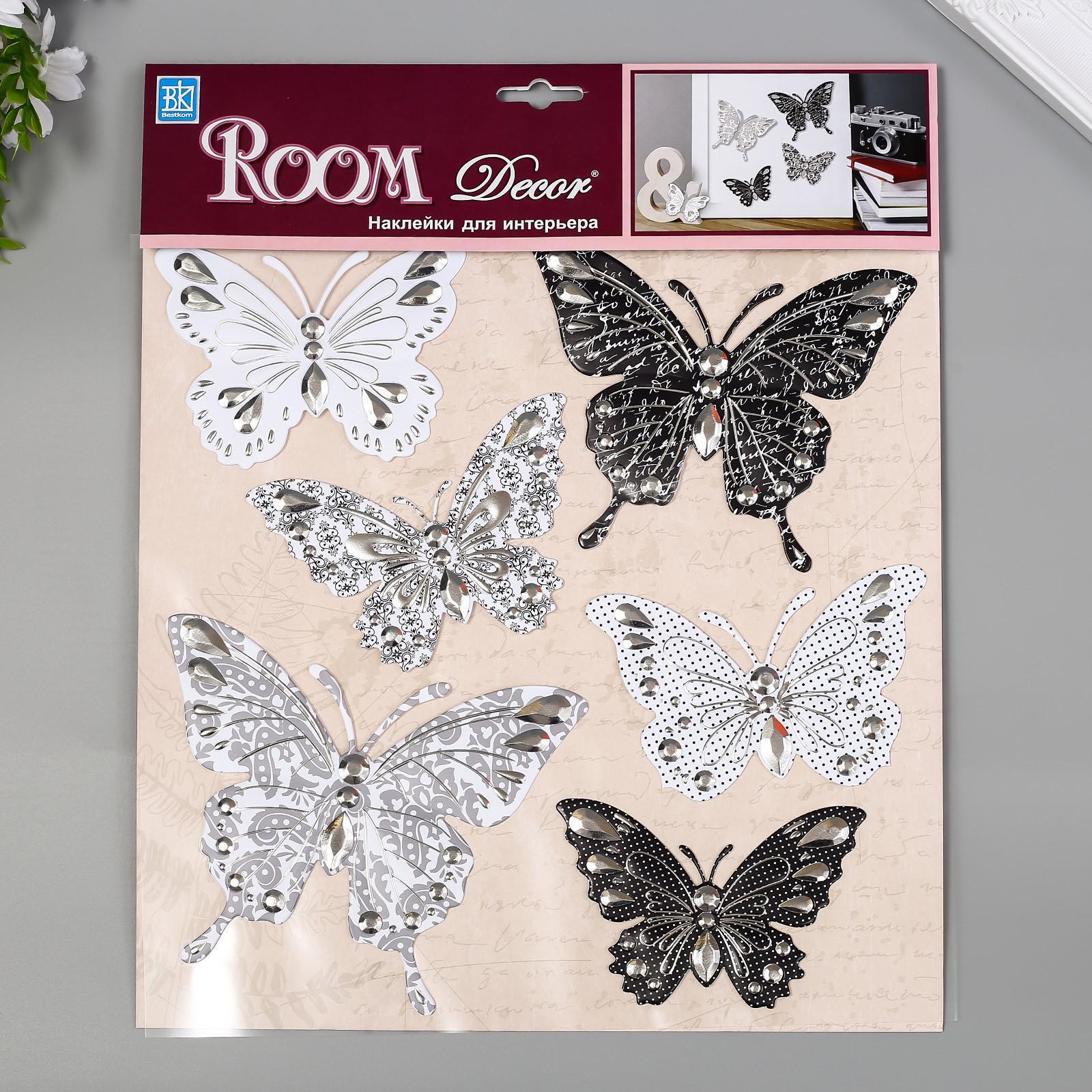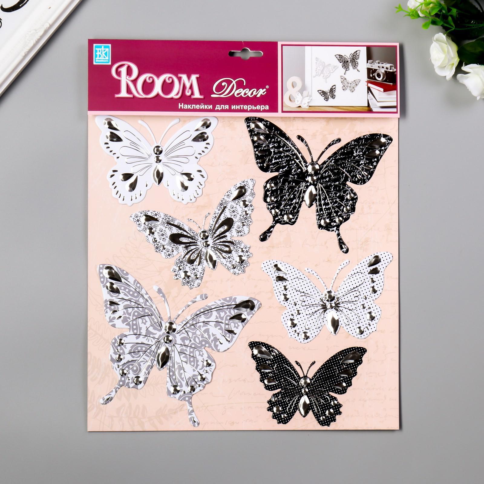Объёмные наклейки Room Decor "Чёрно-белые бабочки" 30х32 см
