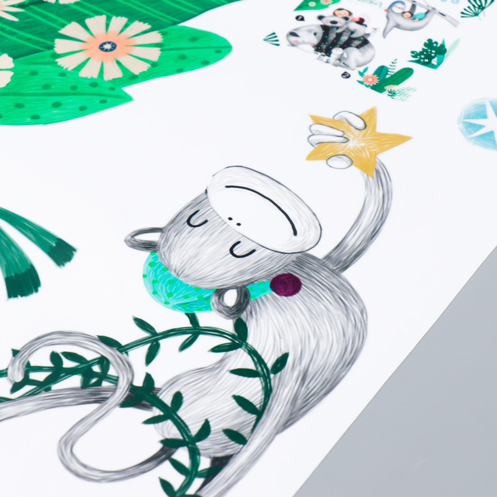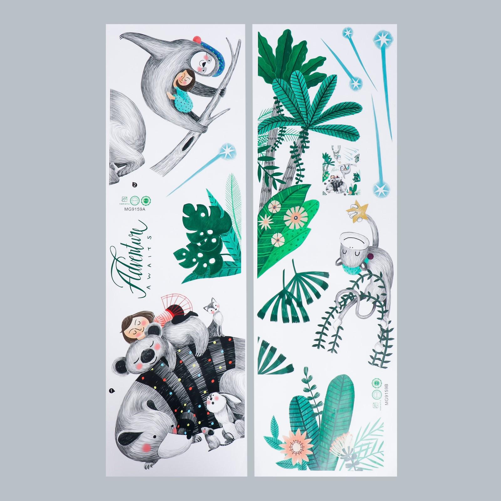Наклейка пластик интерьерная цветная "Приключения зверят в джунглях" набор 2 листа 30х90 см 759941
