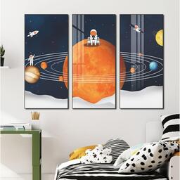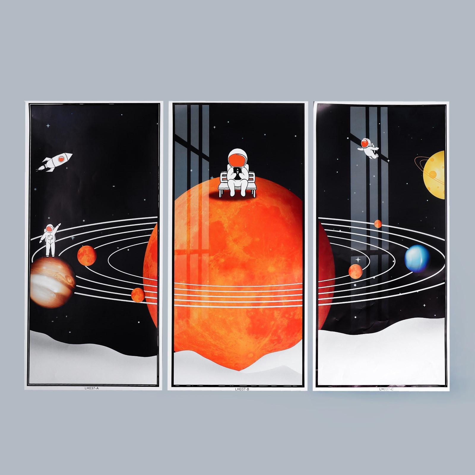Наклейка пластик интерьерная триптих "Космонавты в космосе" набор 3 листа 29,5х61 см