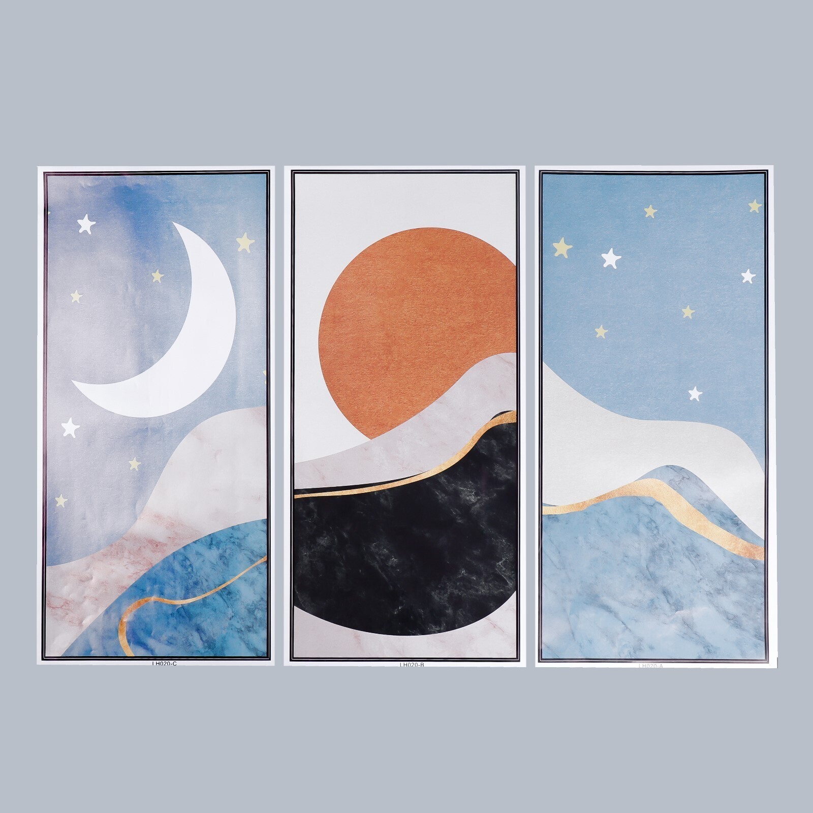 Наклейка пластик интерьерная триптих "Ночь, день и звёзды" набор 3 листа 29,5х61 см