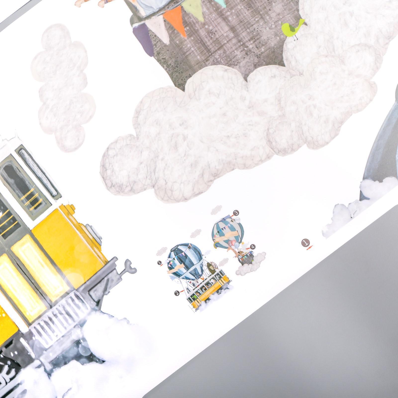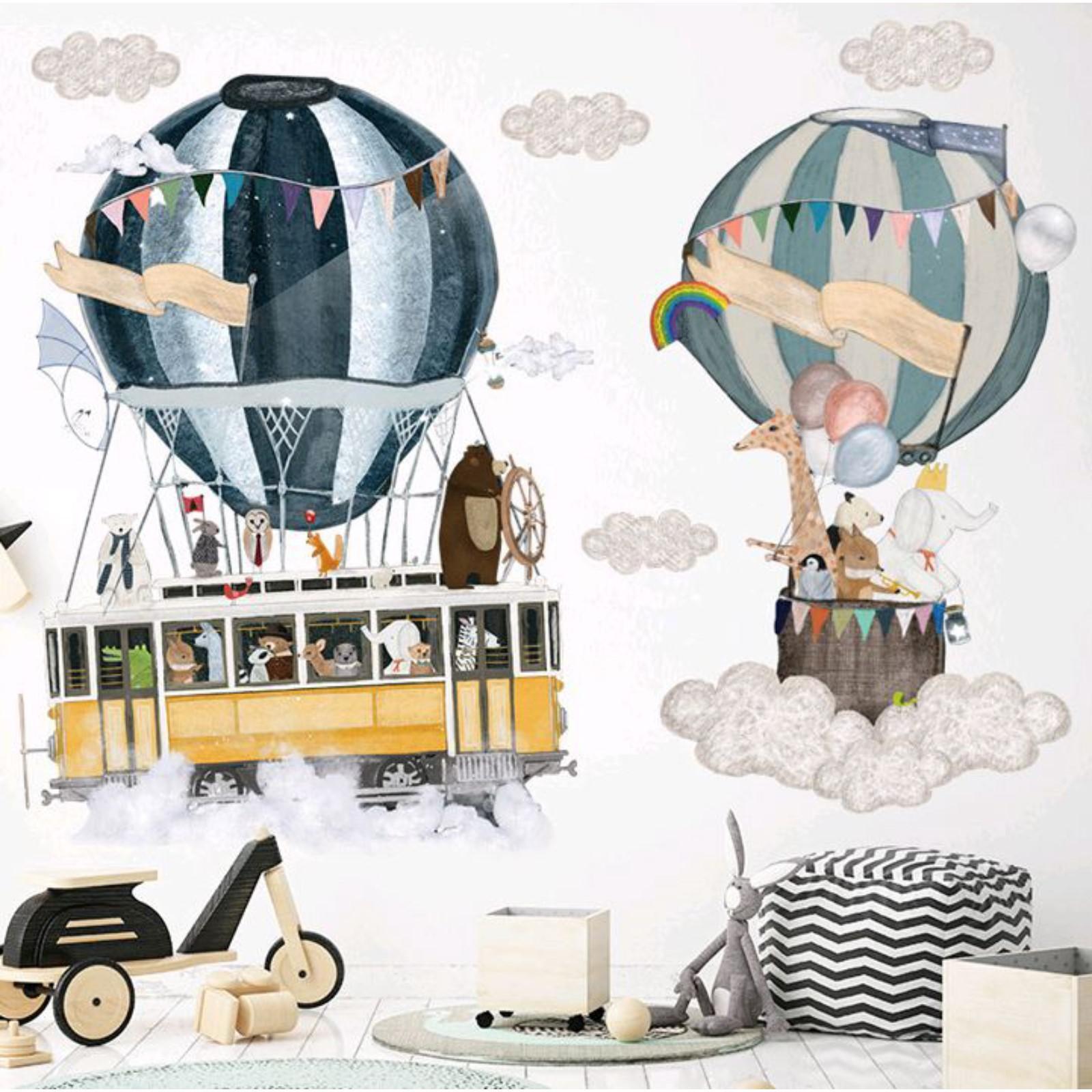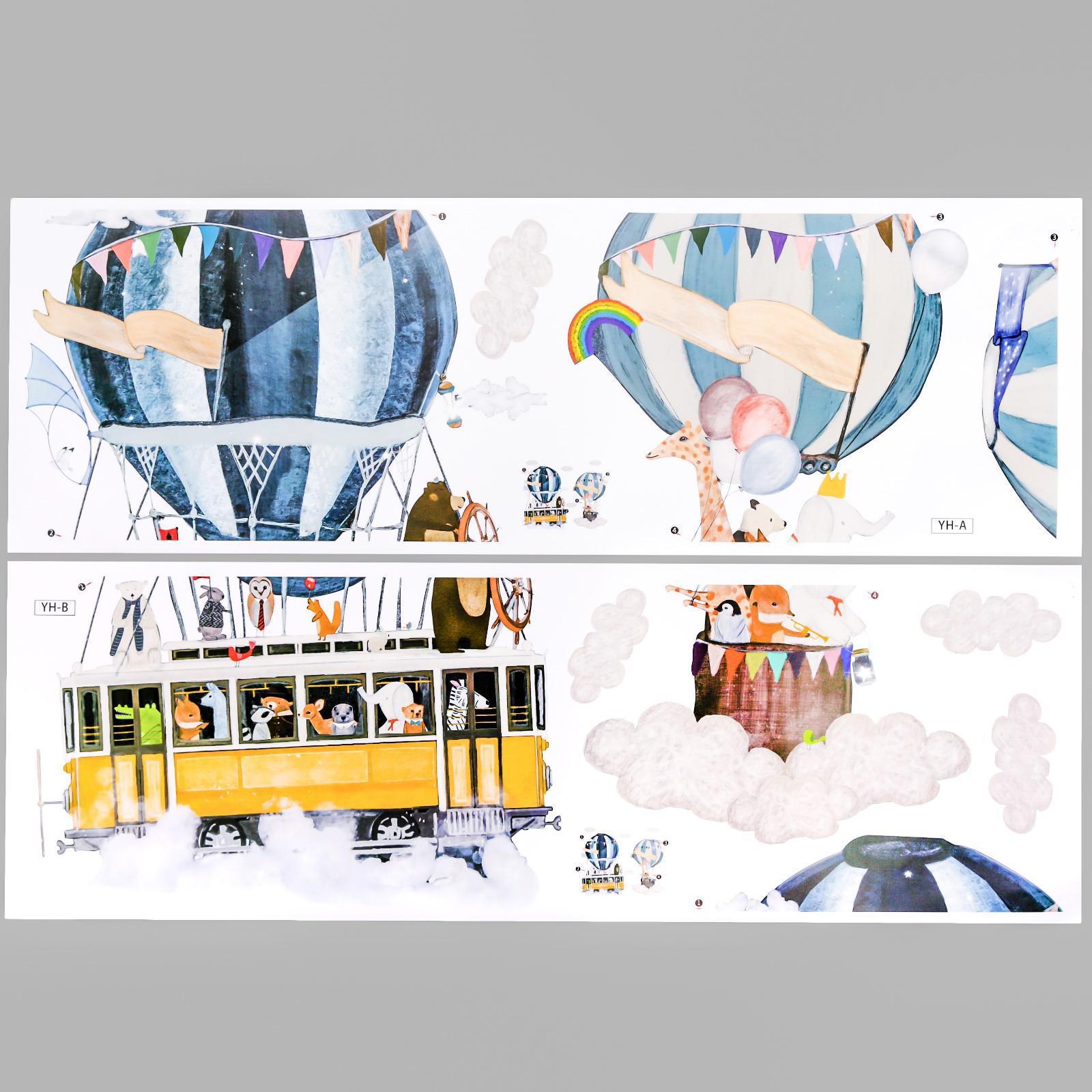 Наклейка пластик интерьерная цветная "Звери на воздушных шарах" 30х90 см набор 2 листа