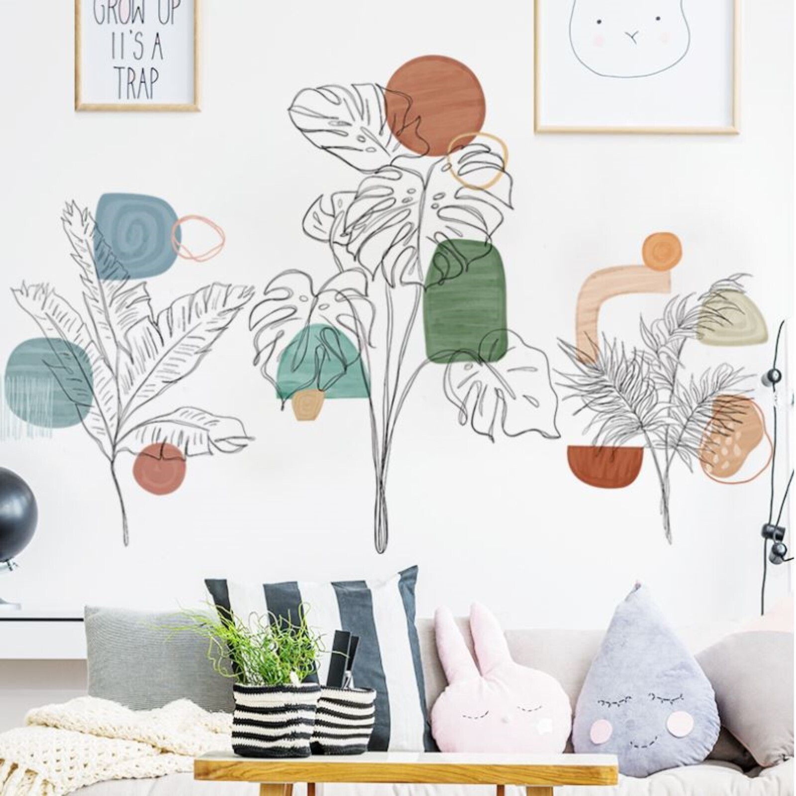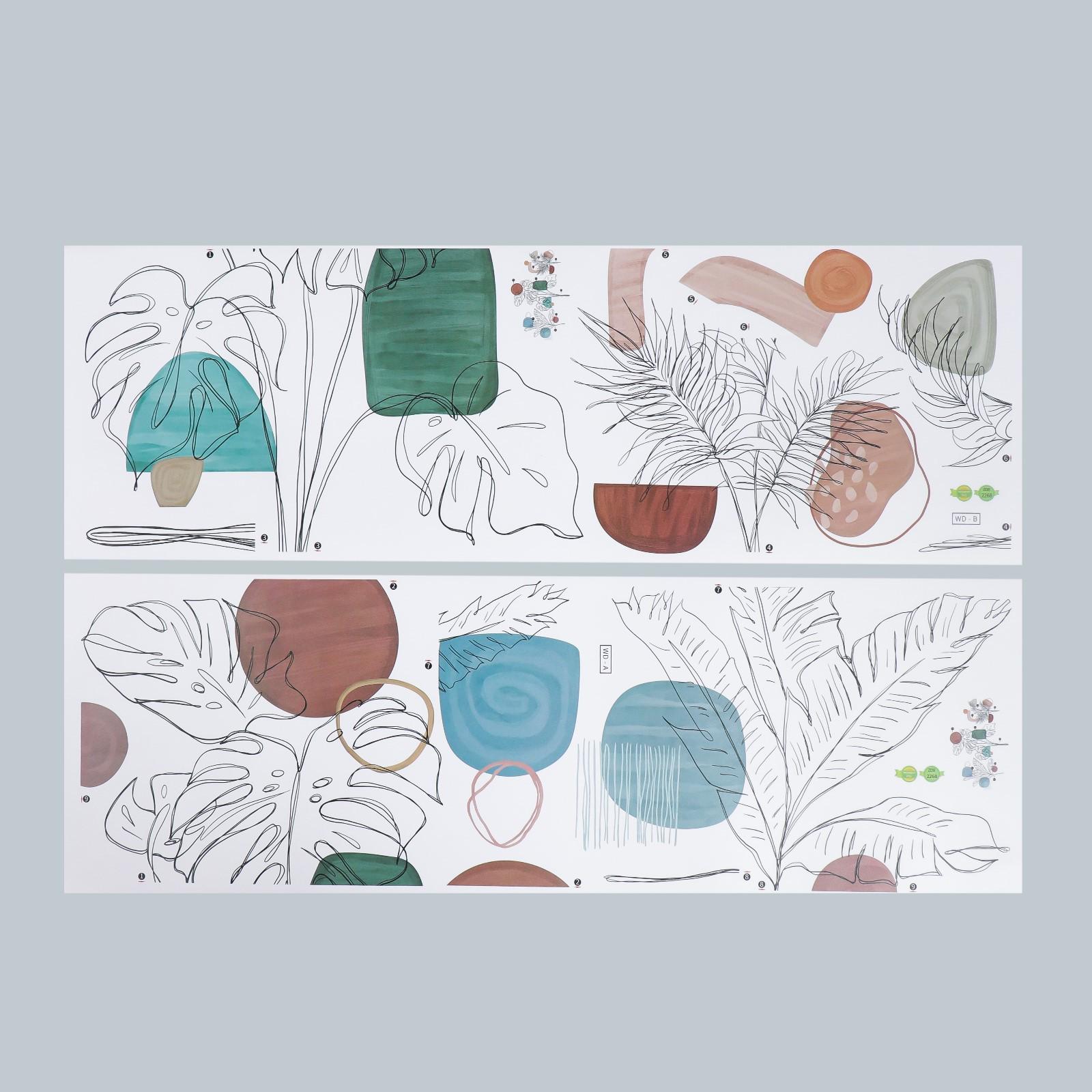 Наклейка пластик интерьерная цветная "Абстракция. Листья" набор 2 листа 30х90 см