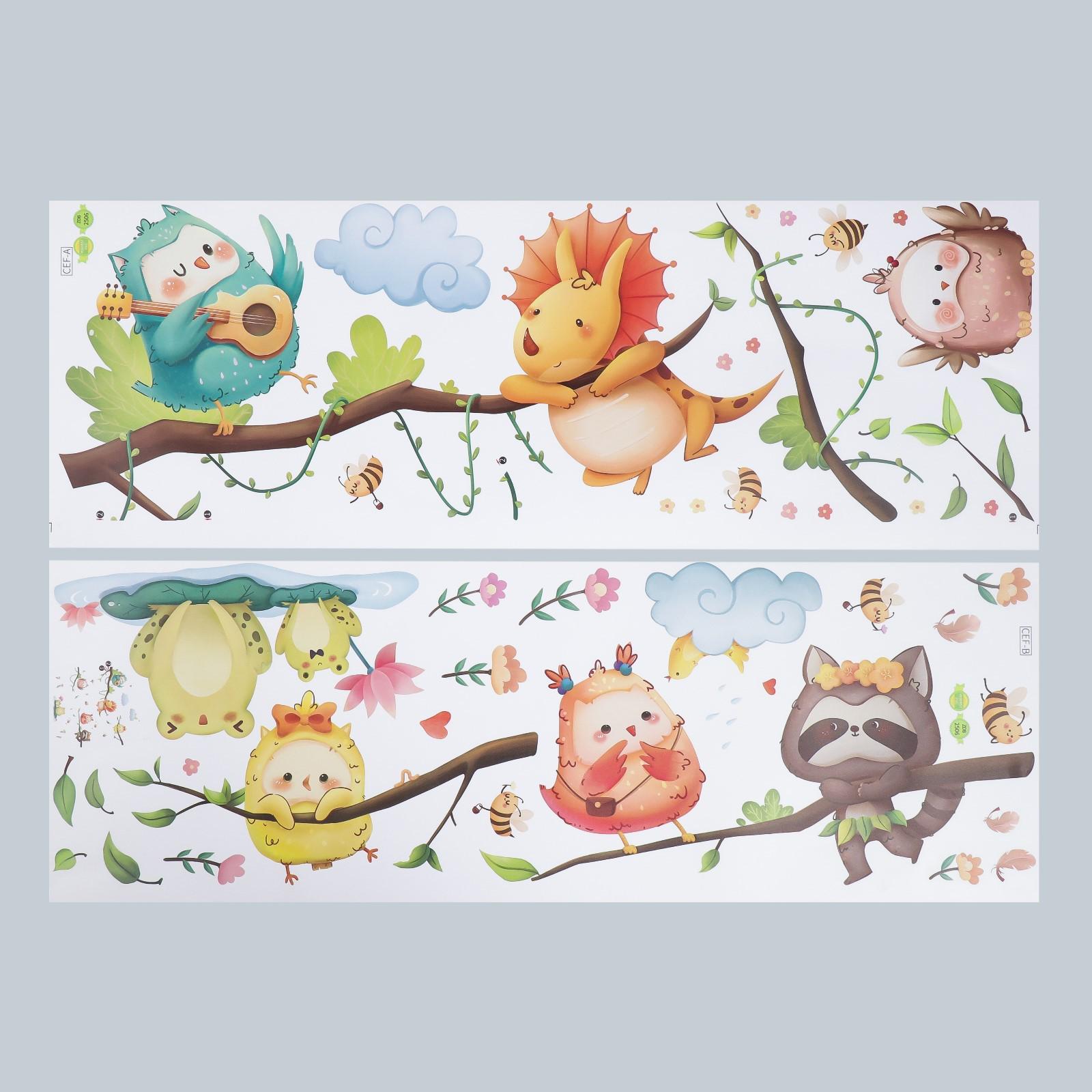 Наклейка пластик интерьерная цветная "Концерт зверят в лесу" набор 2 листа 30х90 см