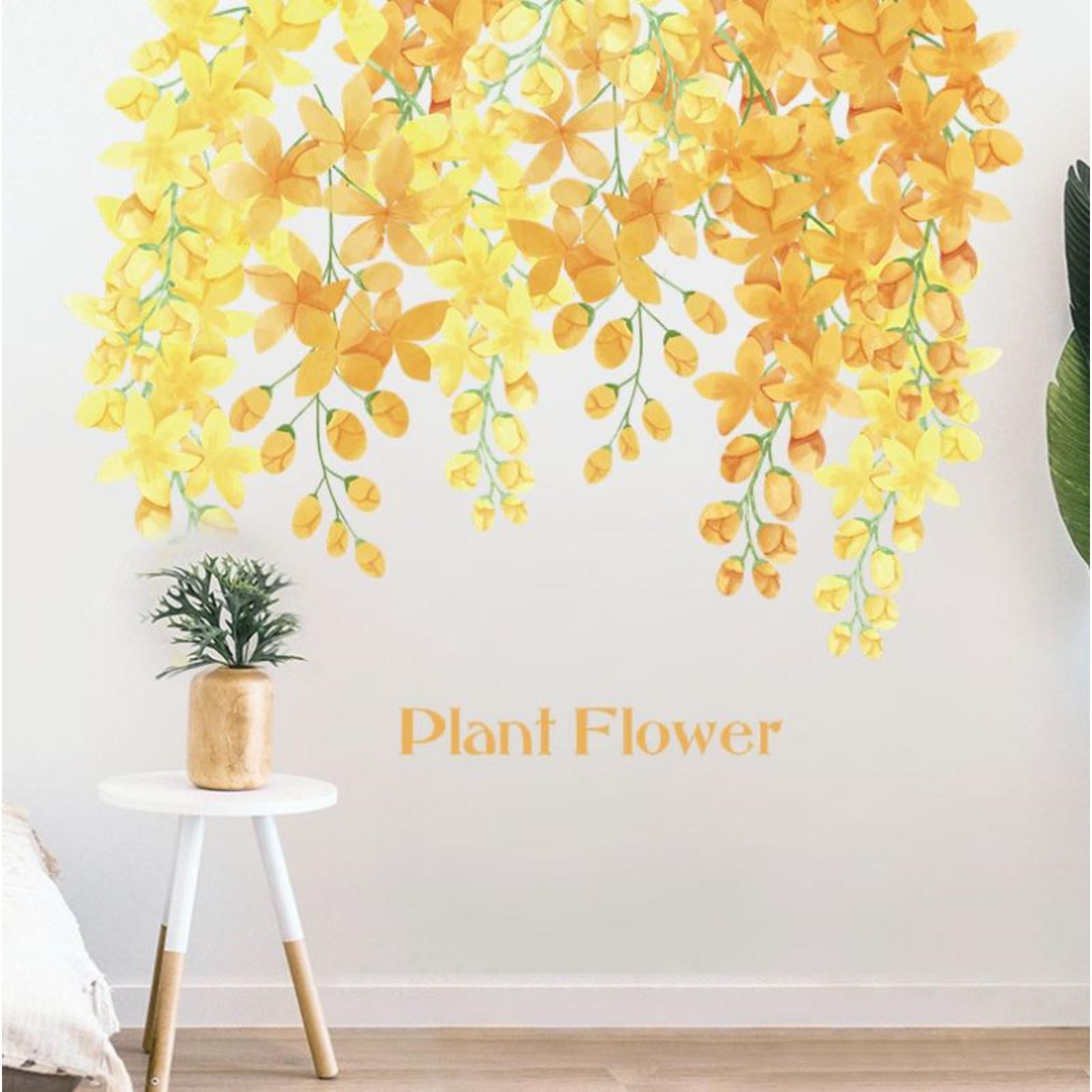 Наклейка пластик интерьерная цветная "Жёлтые цветущие ветви" набор 2 листа 30х90 см