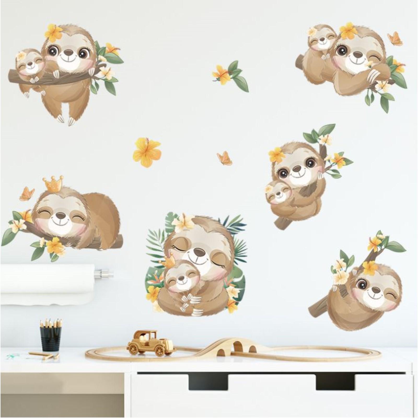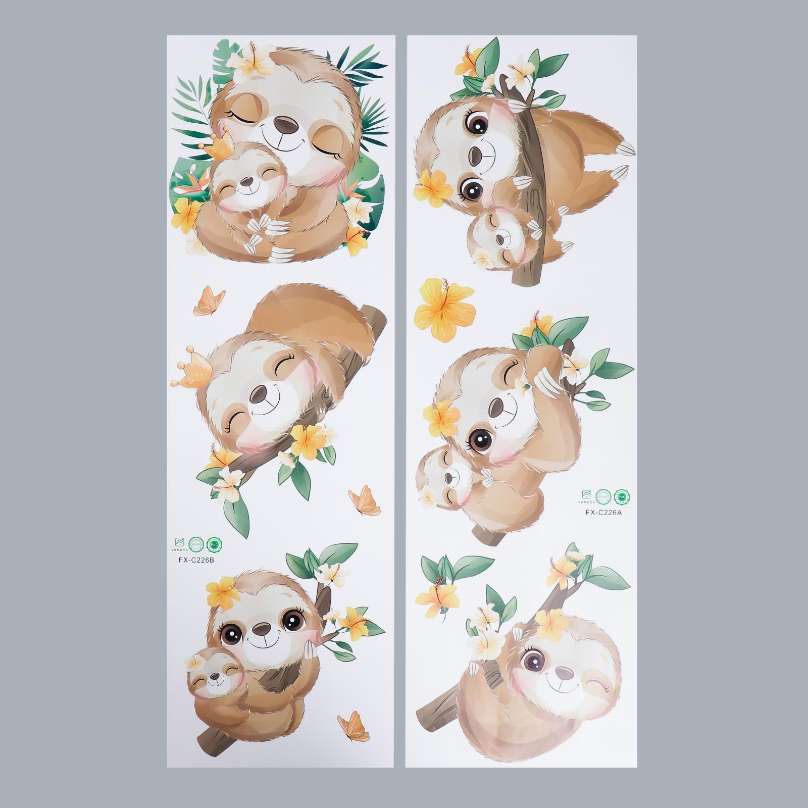 Наклейка пластик интерьерная цветная "Малыши ленивцы" набор 2 листа 30х90 см