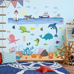 Наклейка пластик интерьерная цветная "Морская жизнь" набор 2 листа 30х90 см
