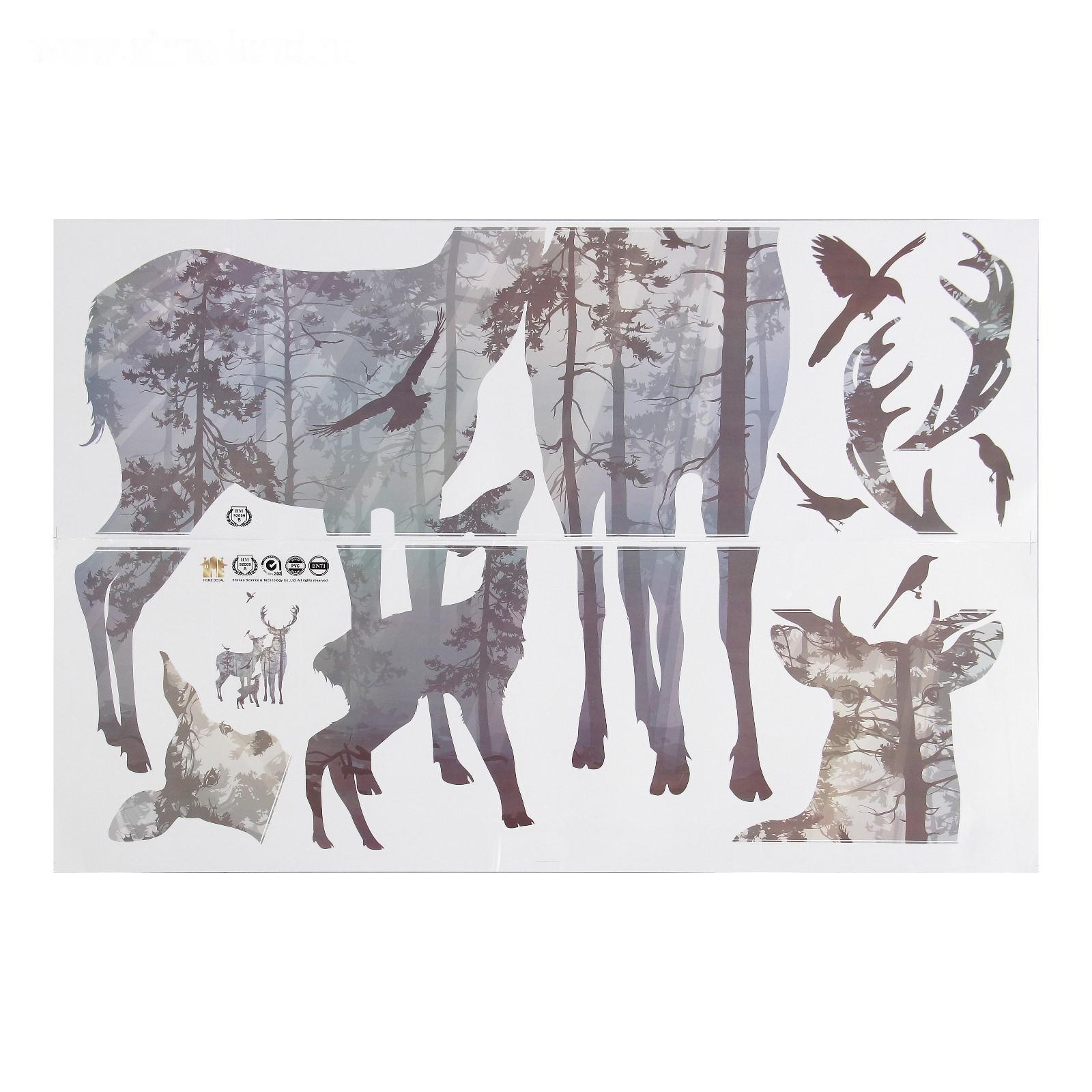 Наклейка пластик интерьерная "Семейство оленей в лесу" 60х90 см