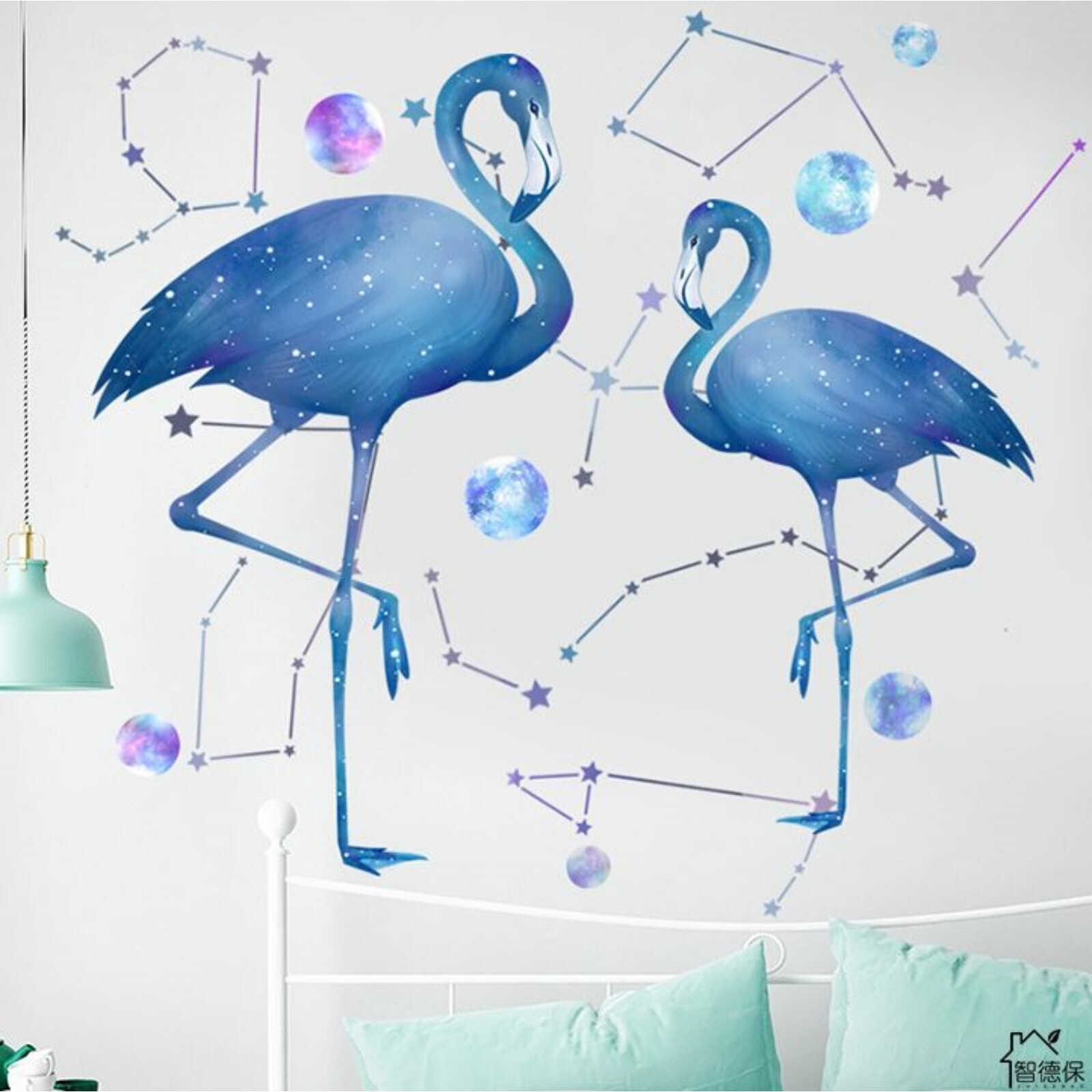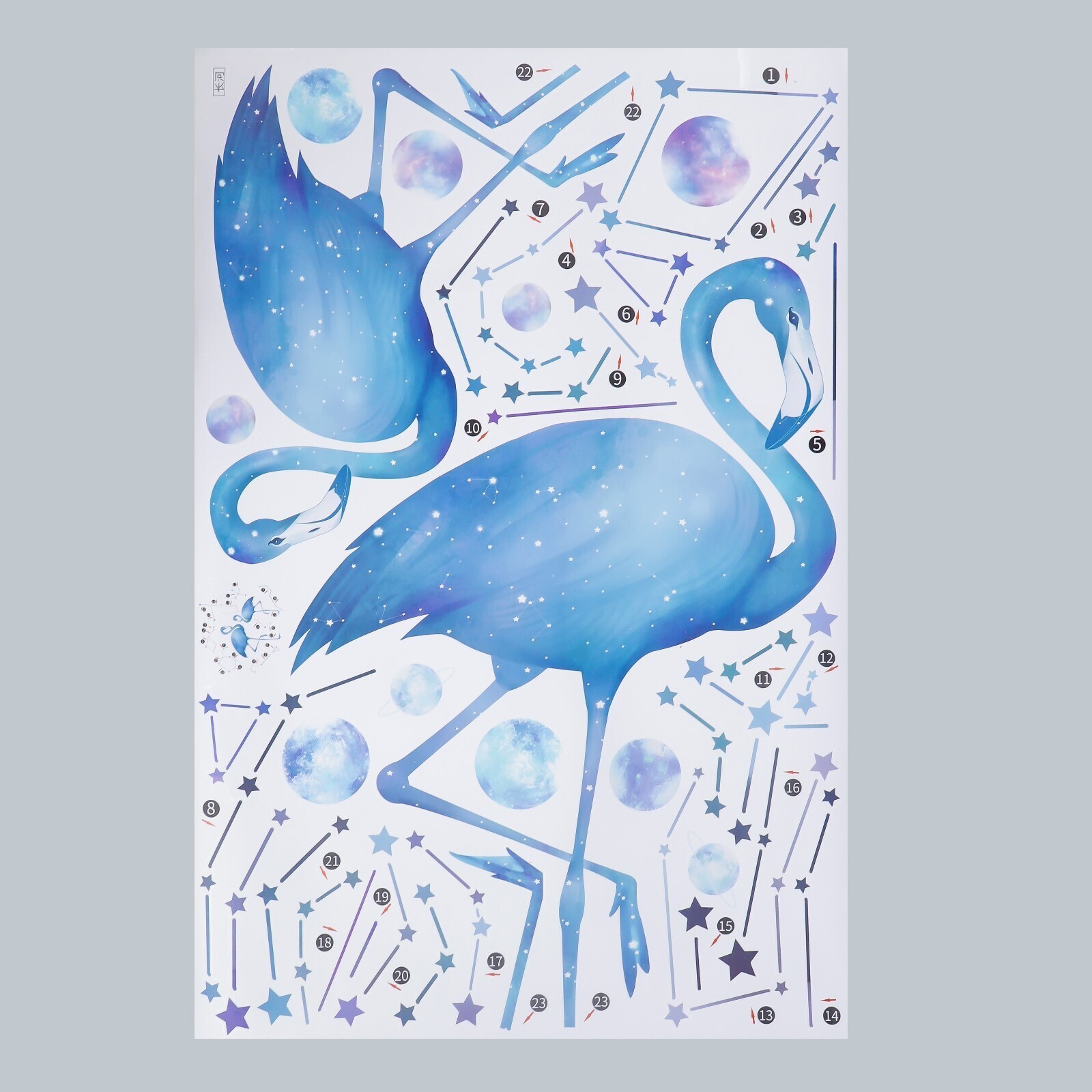 Наклейка пластик интерьерная цветная "Звёздные фламинго"