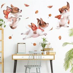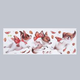 Наклейка пластик интерьерная цветная "Пёсики с крыльями бабочек" 30х83 см