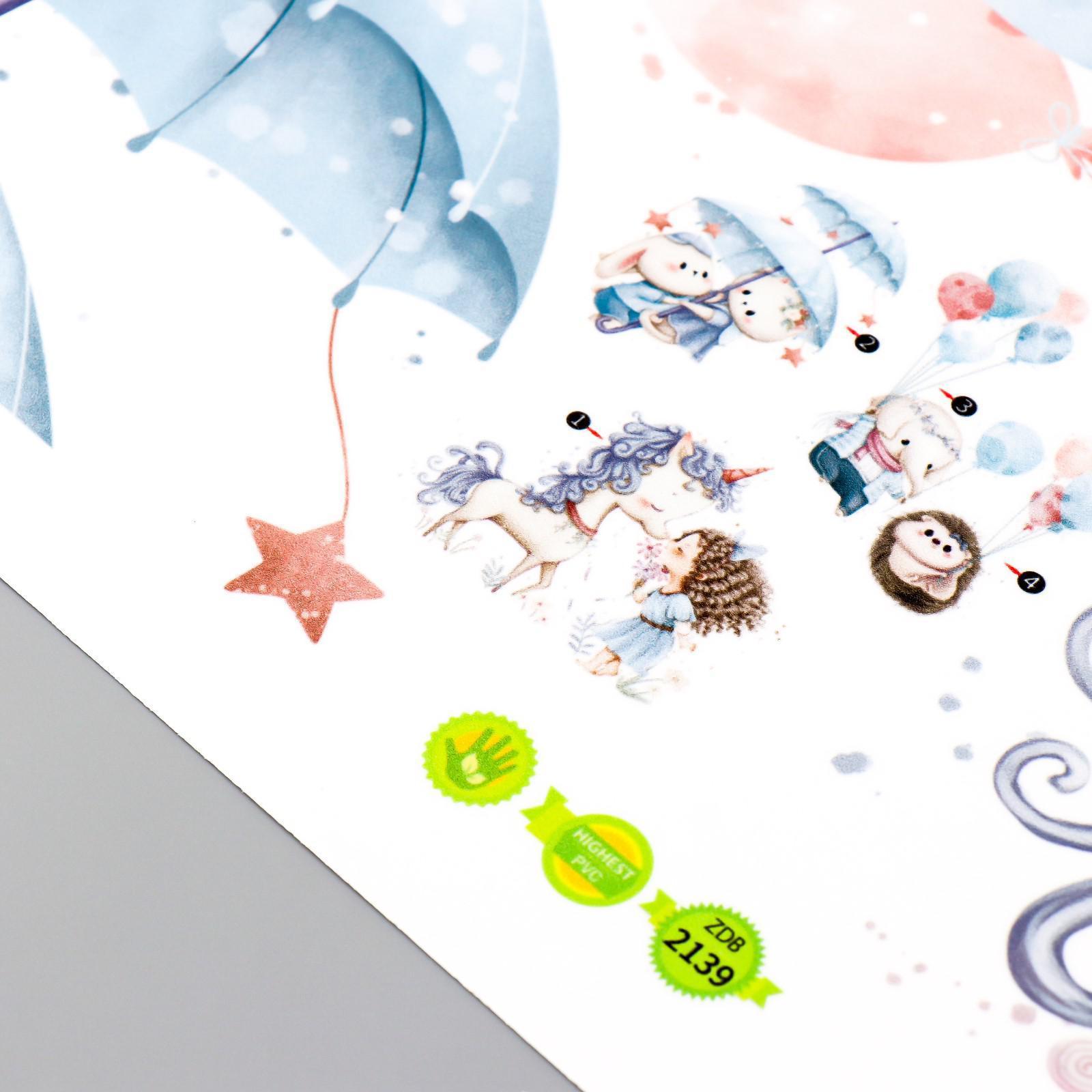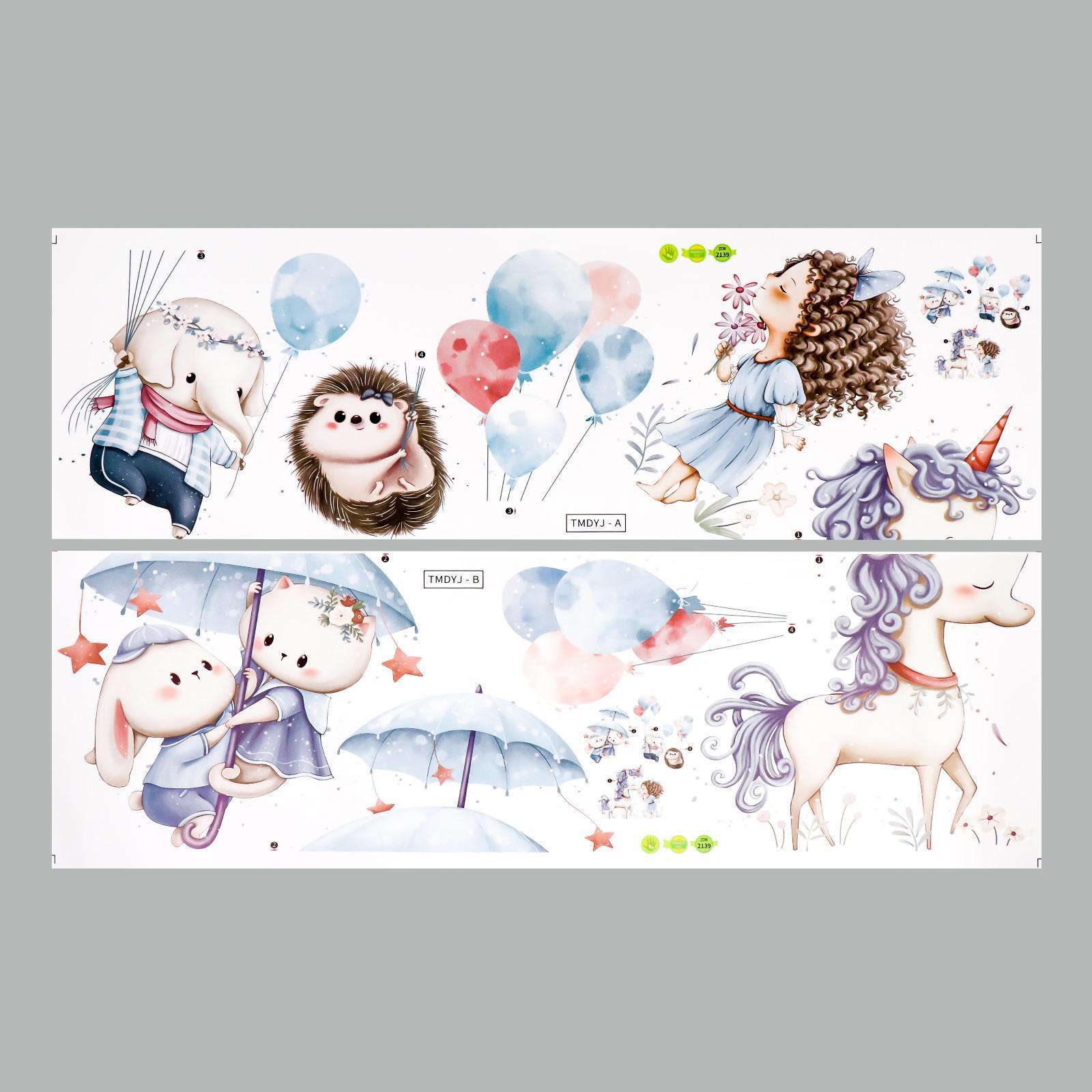 Наклейка пластик интерьерная цветная "Зверята с шариками, зонтиками" 30х90 см набор 2 листа 702589