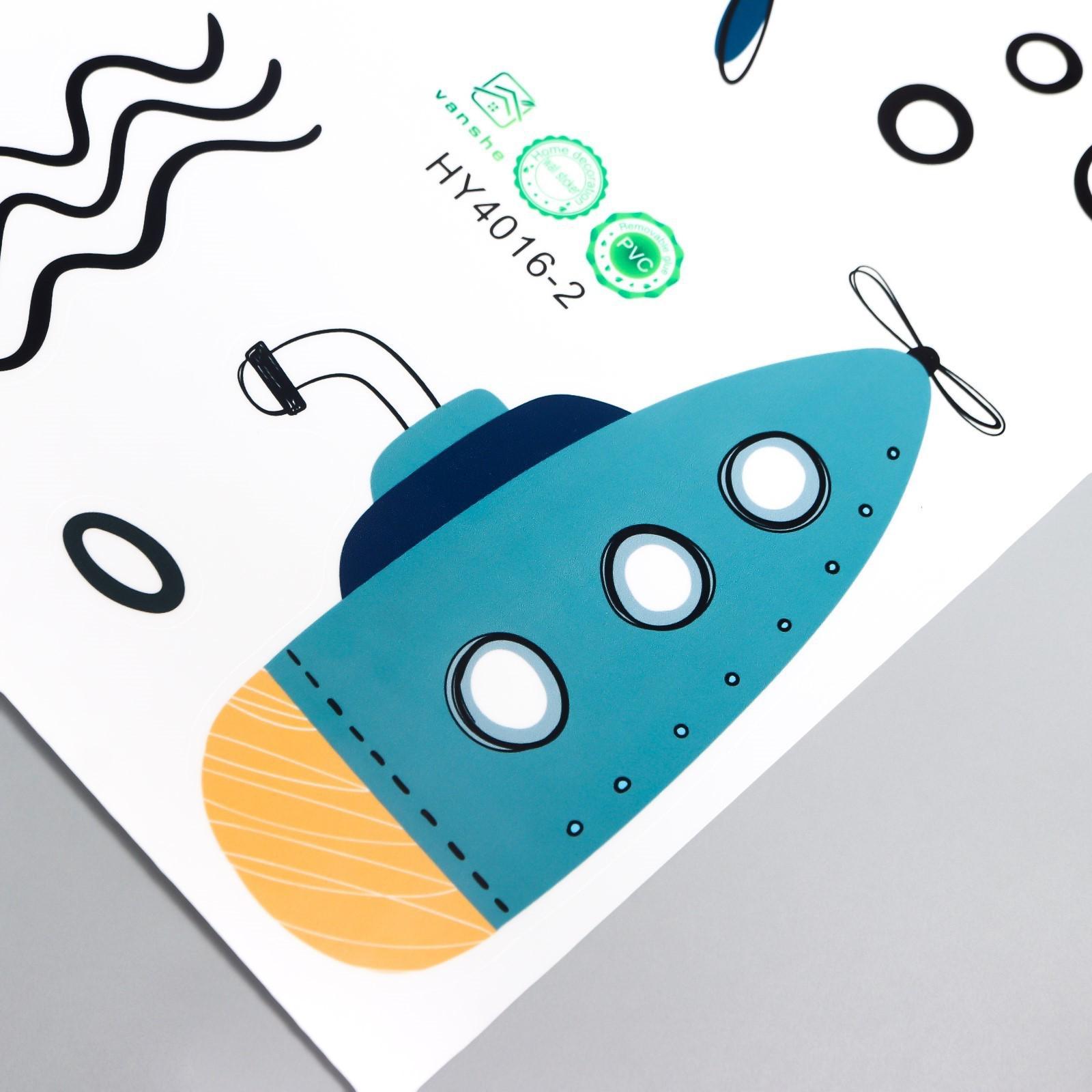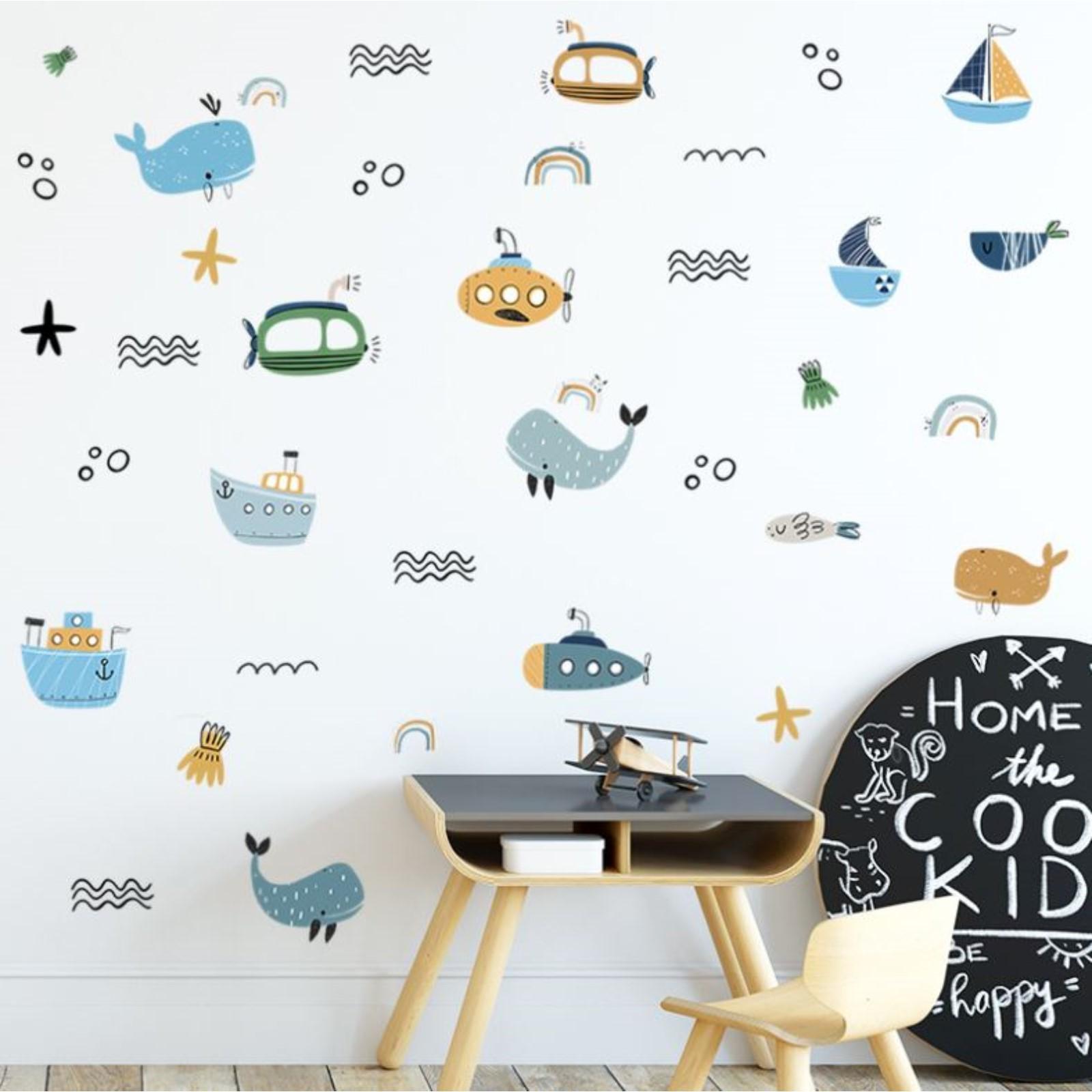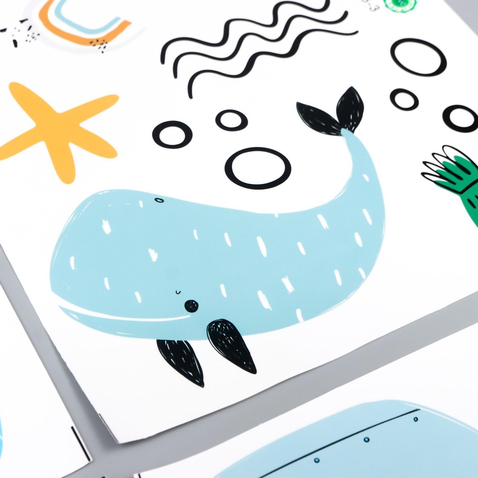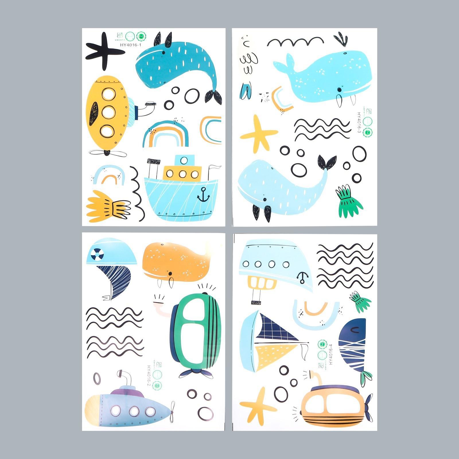 Наклейка пластик интерьерная цветная "Морской транспорт и киты" набор 4 листа 29х40 см