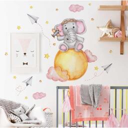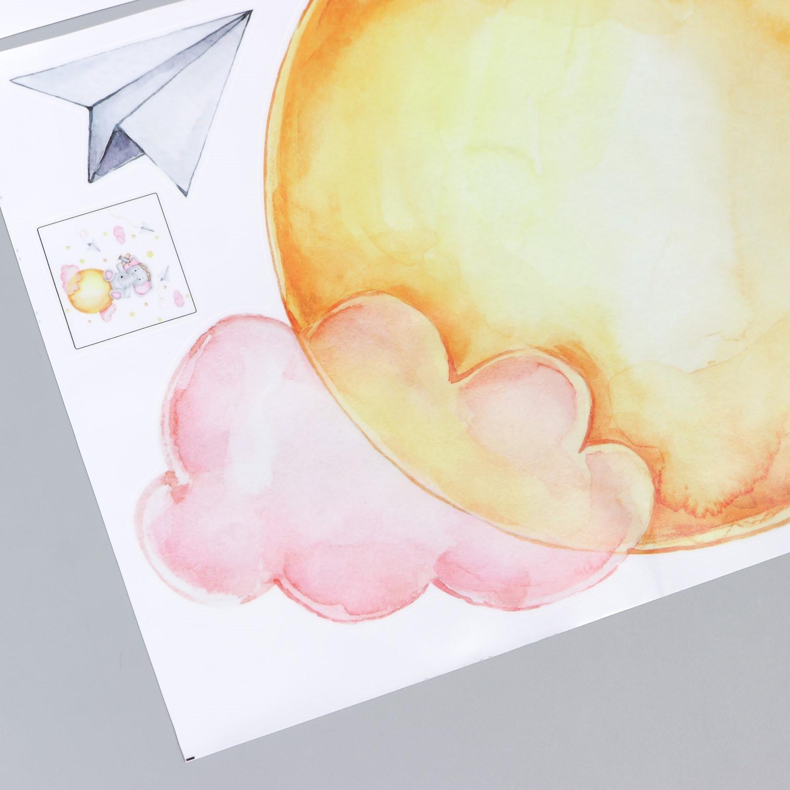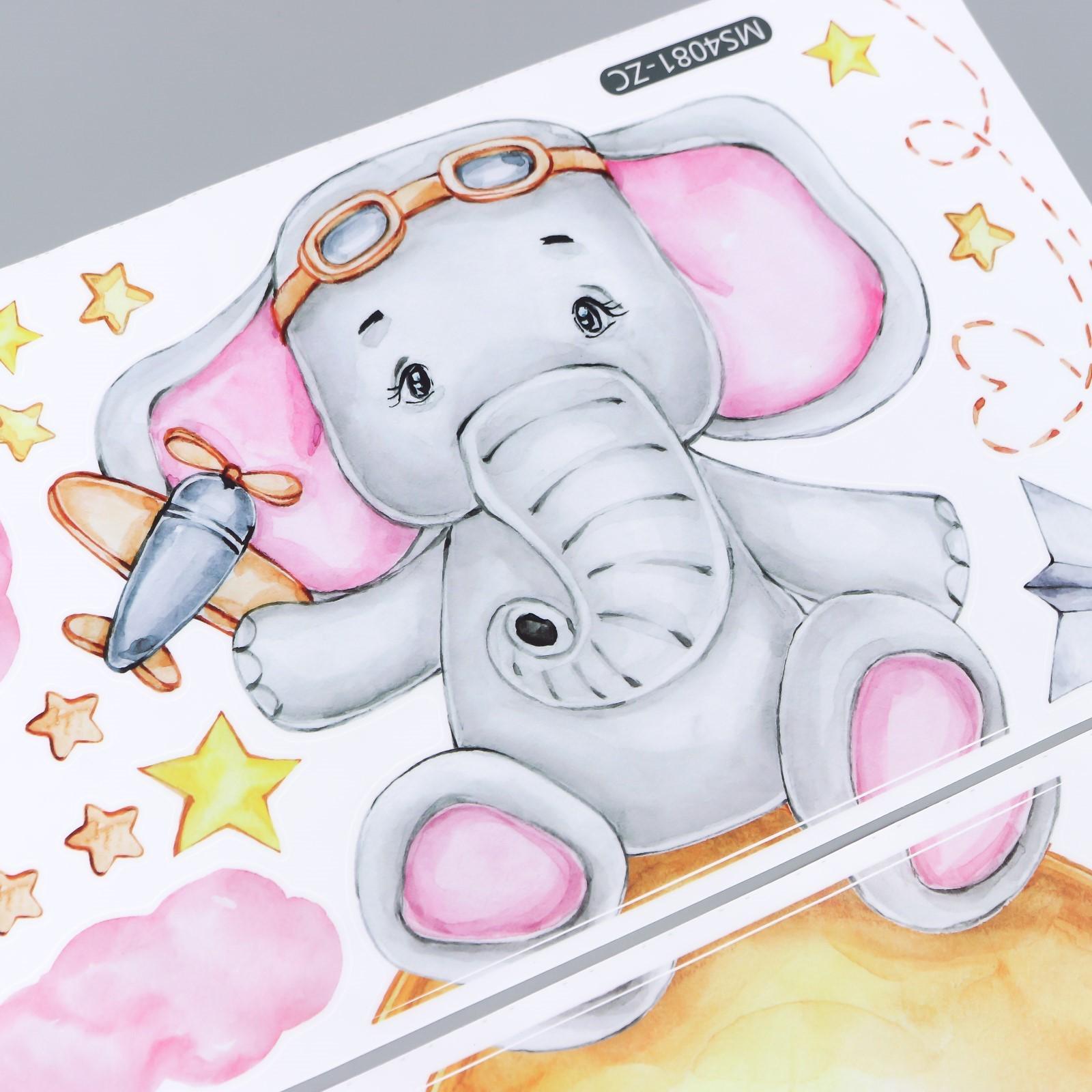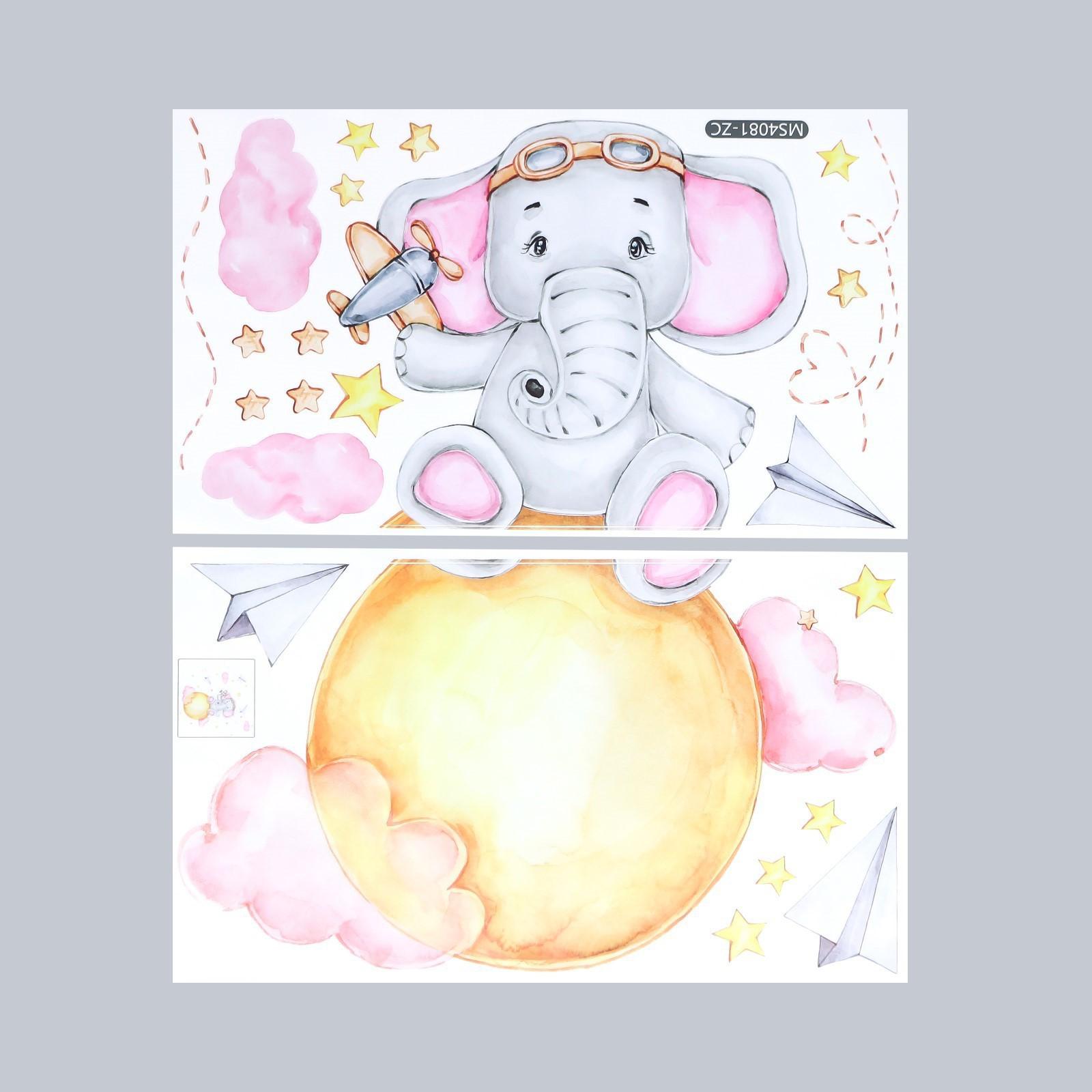 Наклейка пластик интерьерная цветная "Слонёнок с самолётом" набор 2 листа 30х60 см