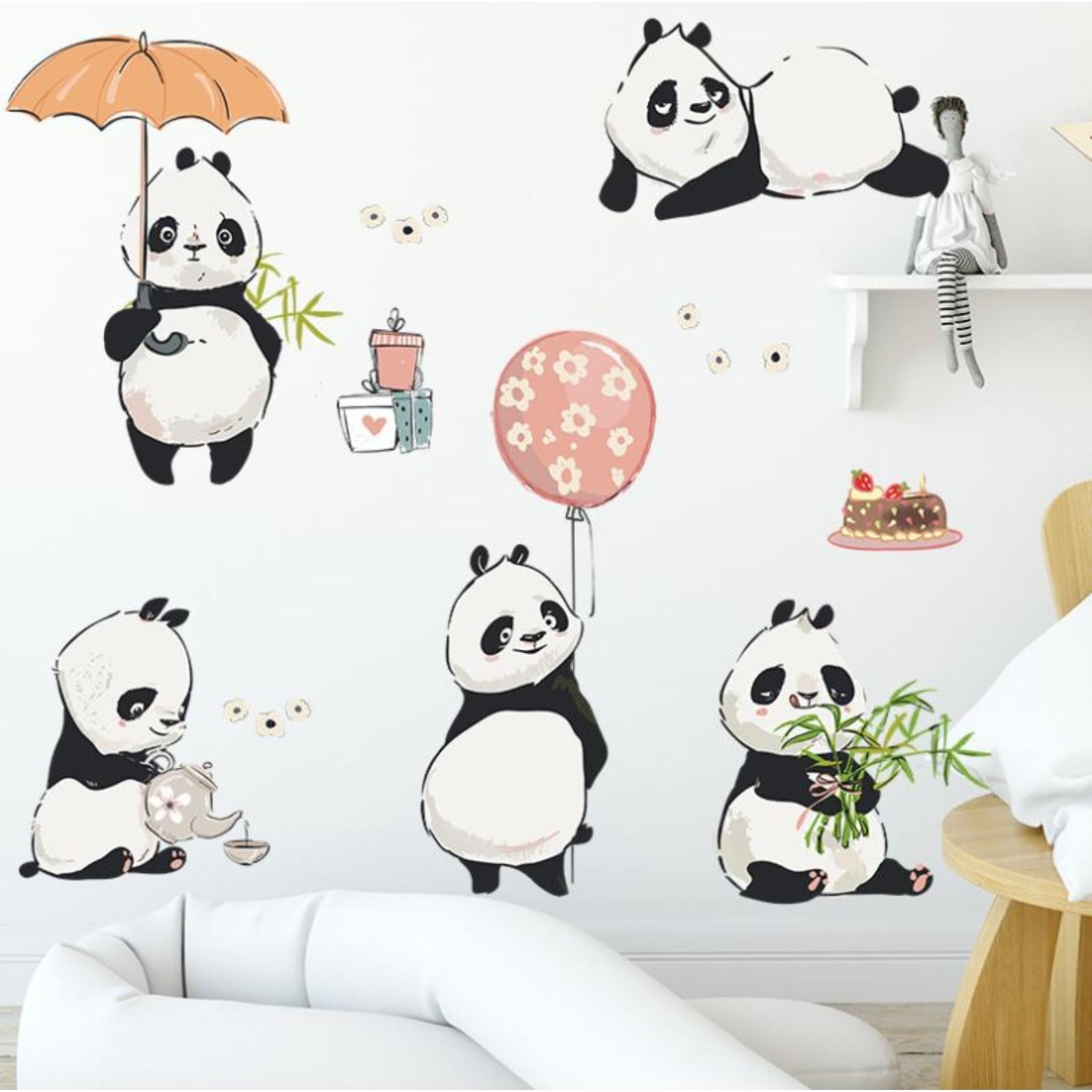 Наклейка пластик интерьерная цветная "Милые панды" набор 2 листа 30х90 см