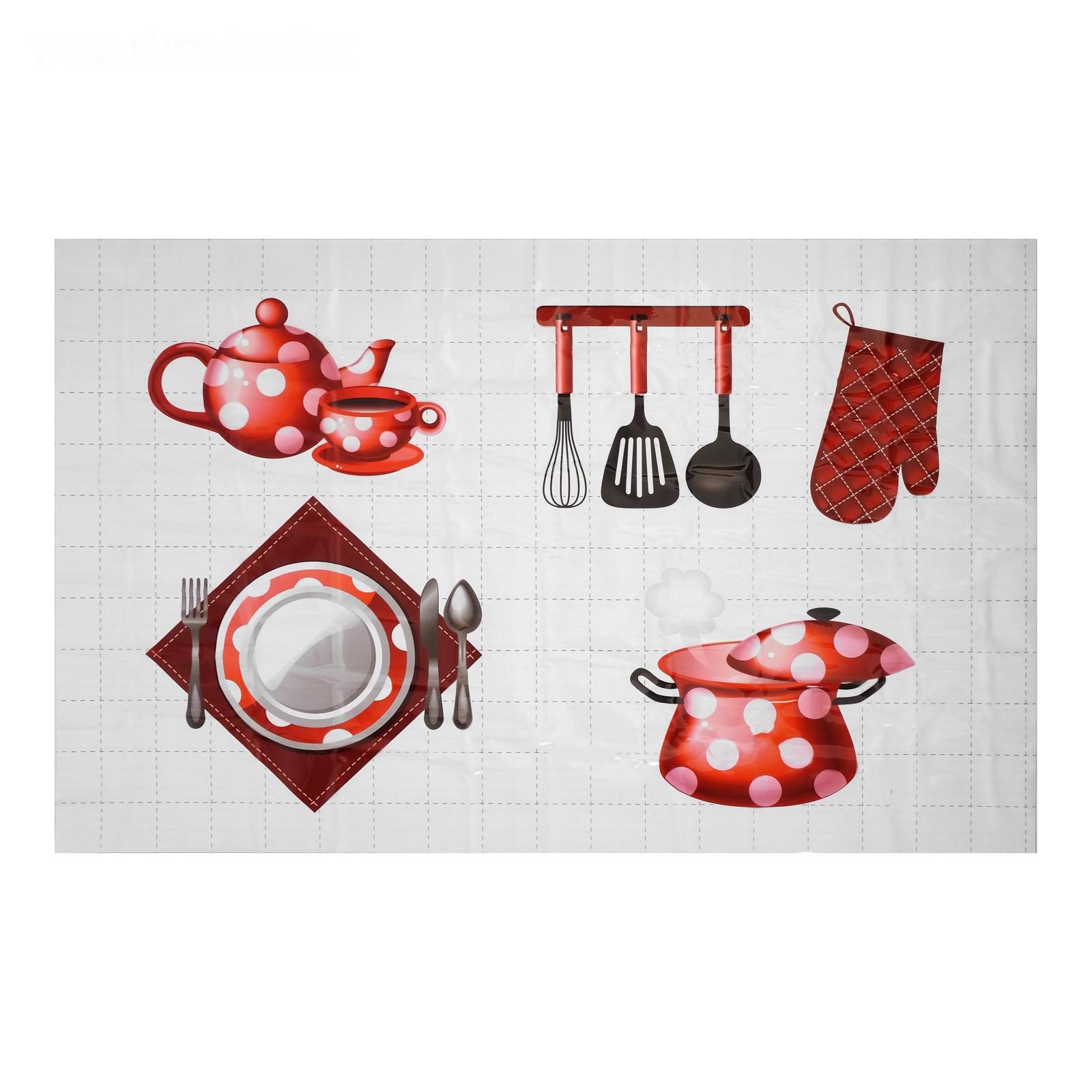 Наклейка на кафельную плитку "Посуда в горошек" 60х90 см