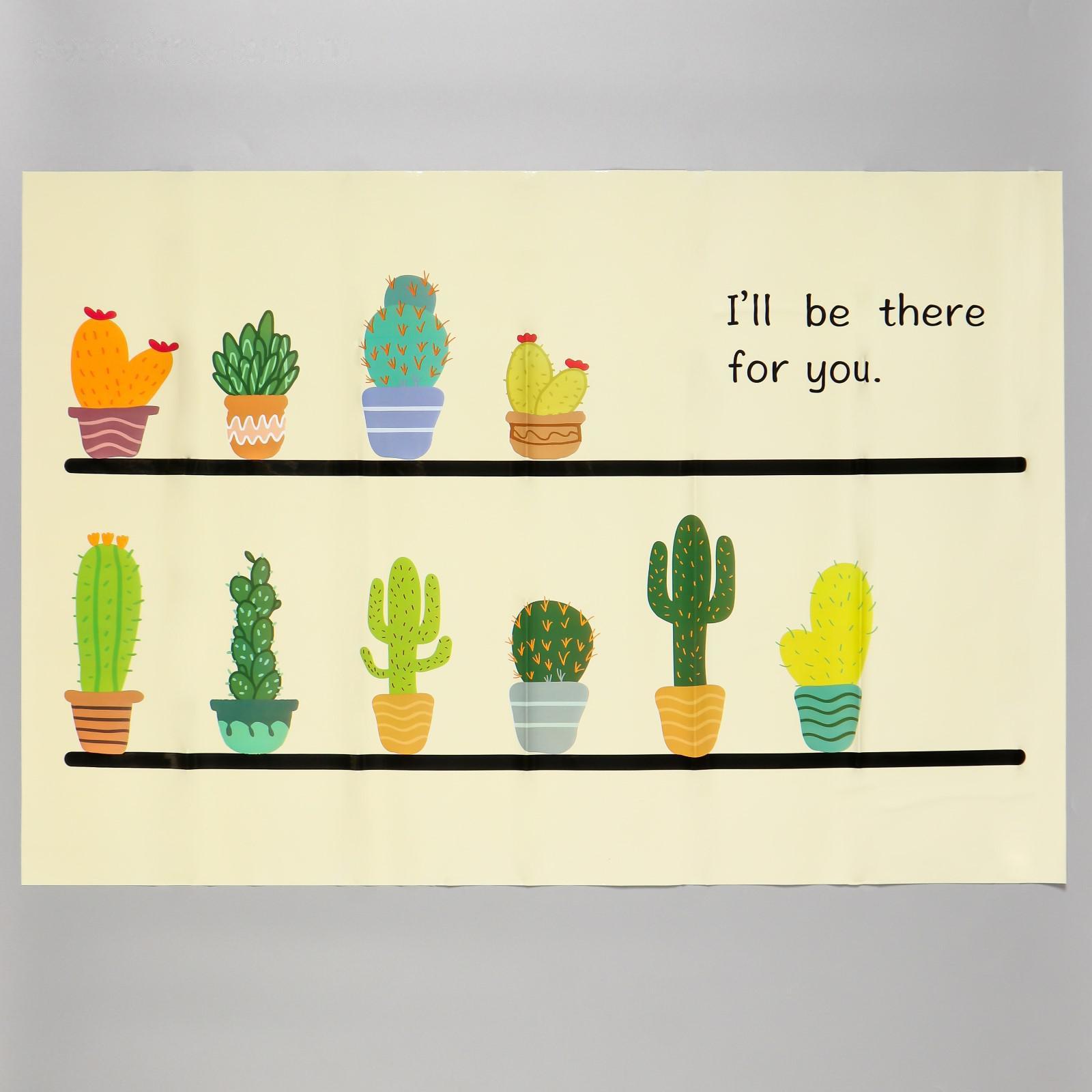 Наклейка на кафельную плитку "Кактусы в горшочках" 60х90 см