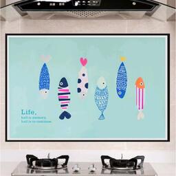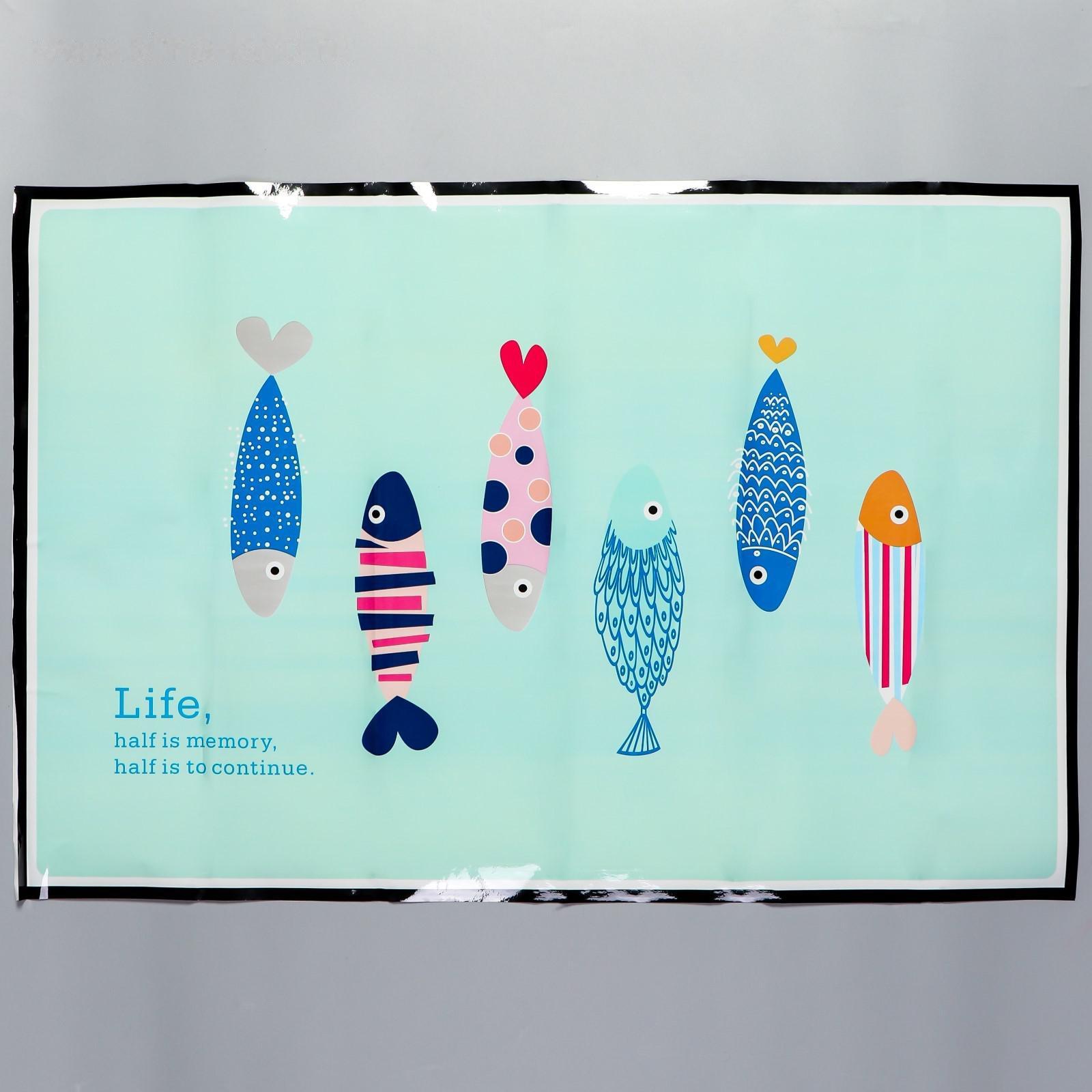 Наклейка на кафельную плитку "Рыбки на синем фоне " 60х90см