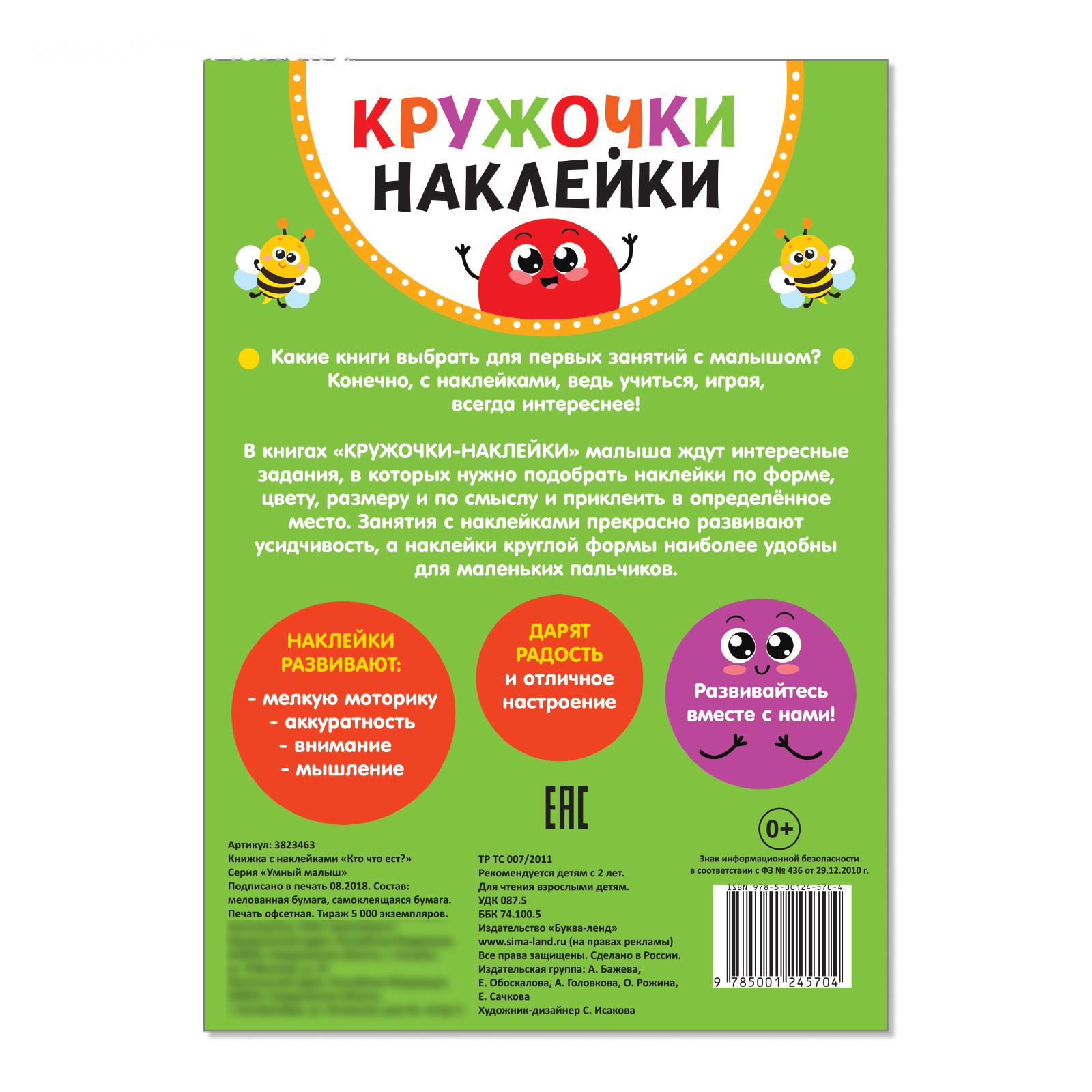 Наклейки кружочки «Кто что ест?», 16 стр.