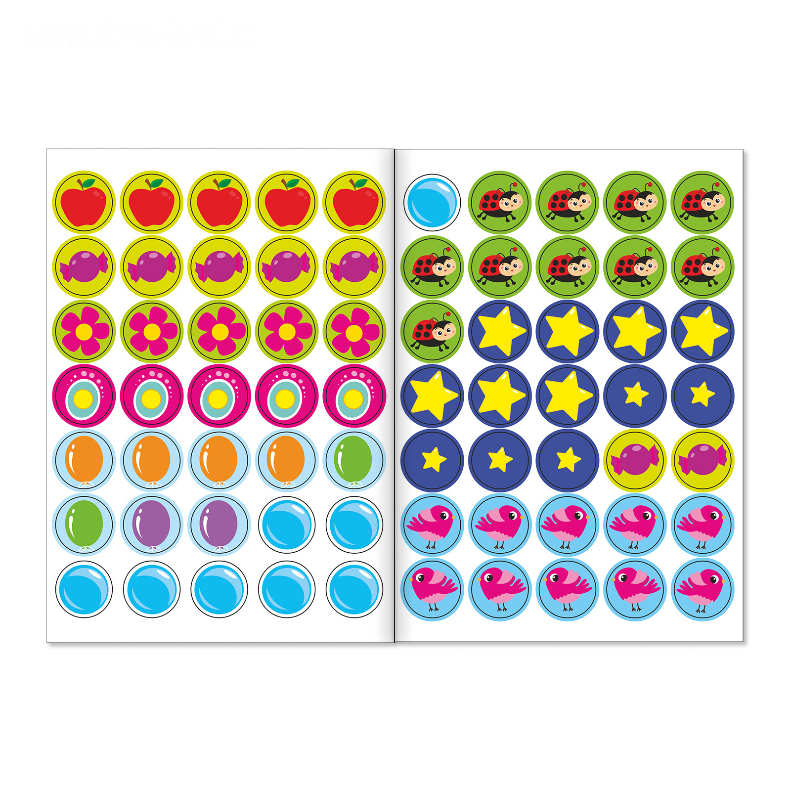 В наборе есть 70 наклеек-кружочков.