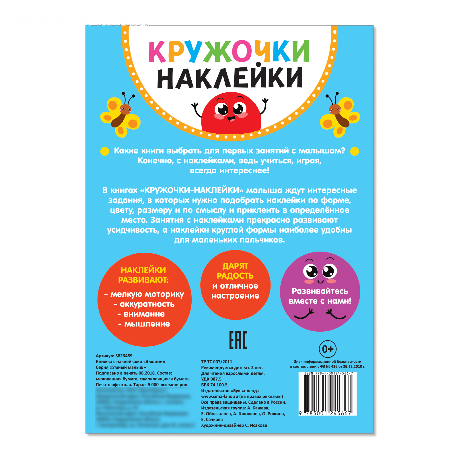 Книга с наклейками-кружочками создана для самых маленьких читателей. Приклеивая яркие кружочки, ребёнок узнает многое об окружающем его мире и потренирует ловкость пальчиков, внимательность и аккуратность.