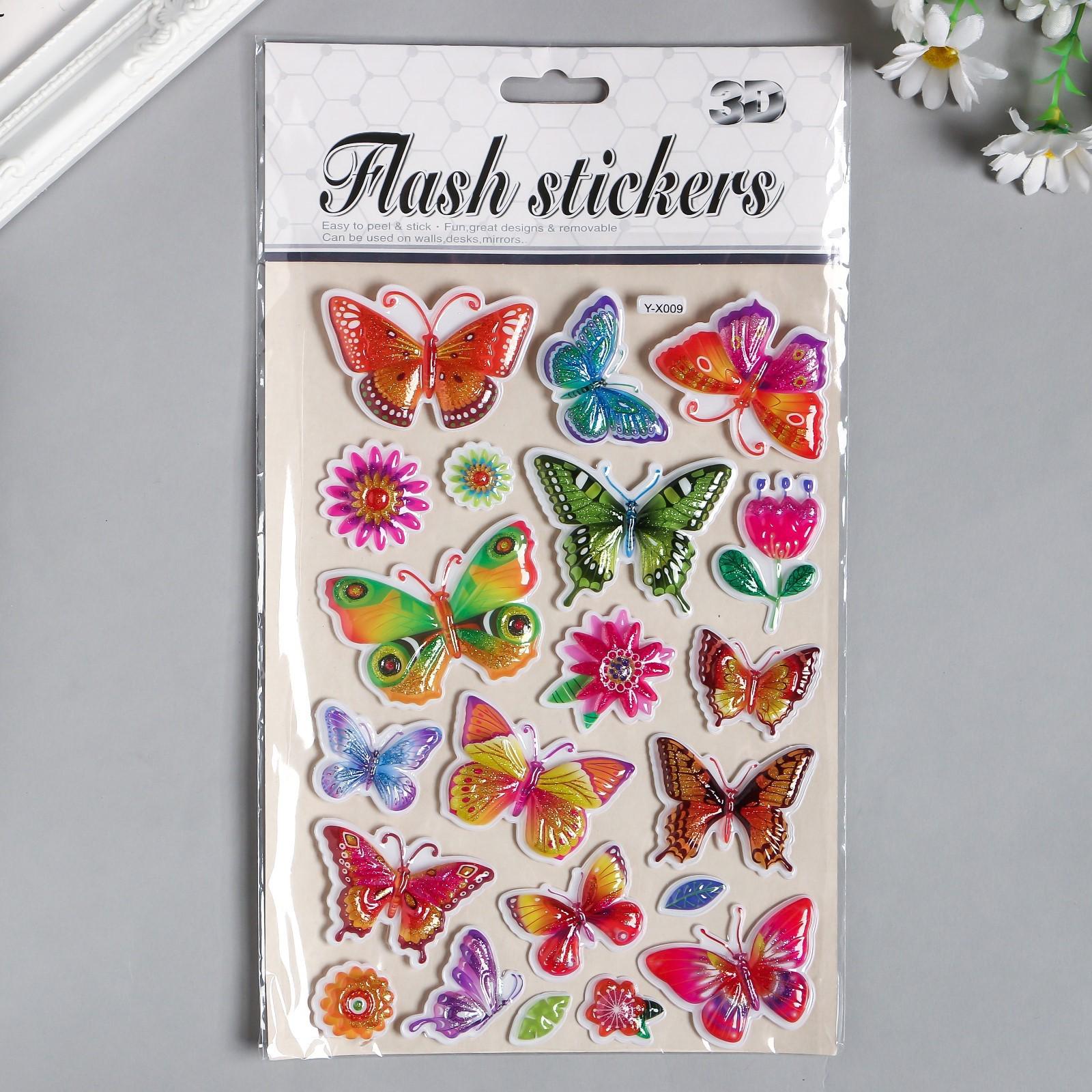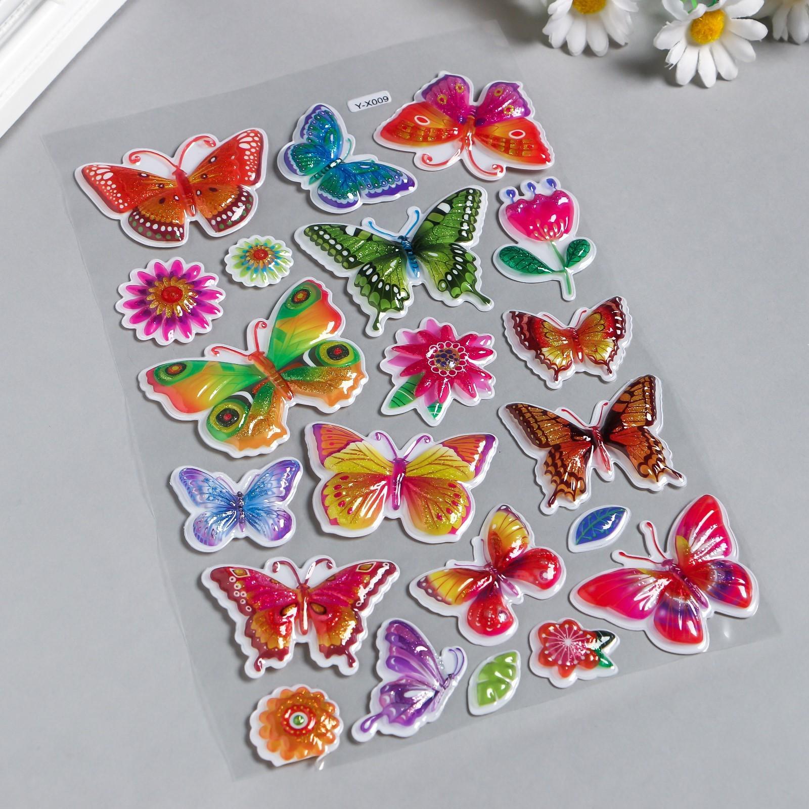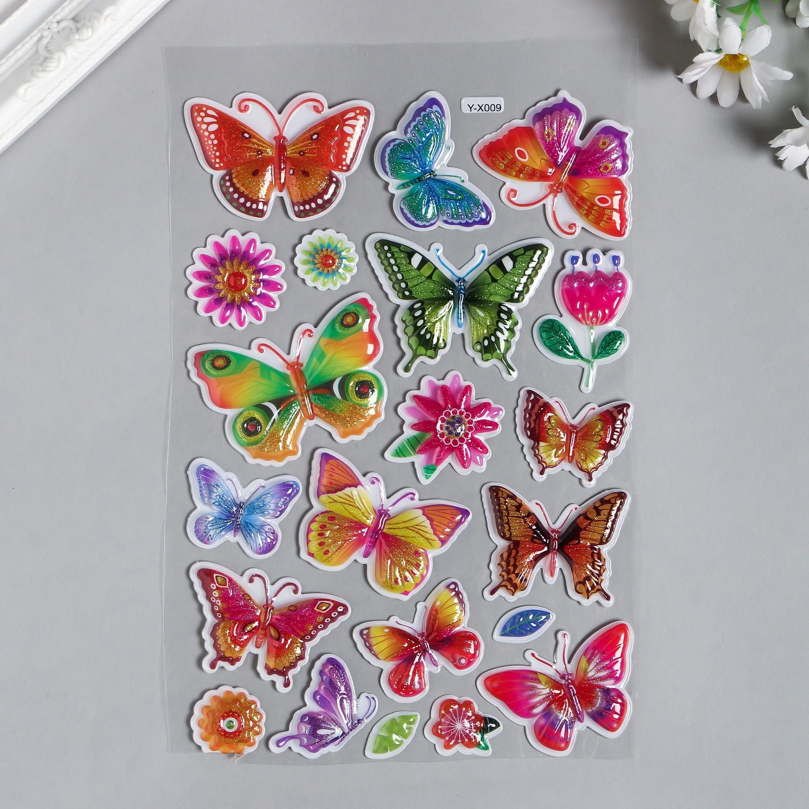 Наклейка пластик с блёстками выпуклая "Бабочки" 29х16 см 4331128