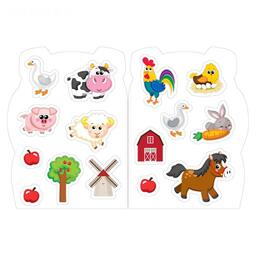 Раскраска с наклейками — это двойное удовольствие для ребёнка! Малыш познакомится с милыми персонажами и раскрасит все картинки. Расскажите ребёнку о животных, птичках, фруктах и растениях и разучите стихи о них.