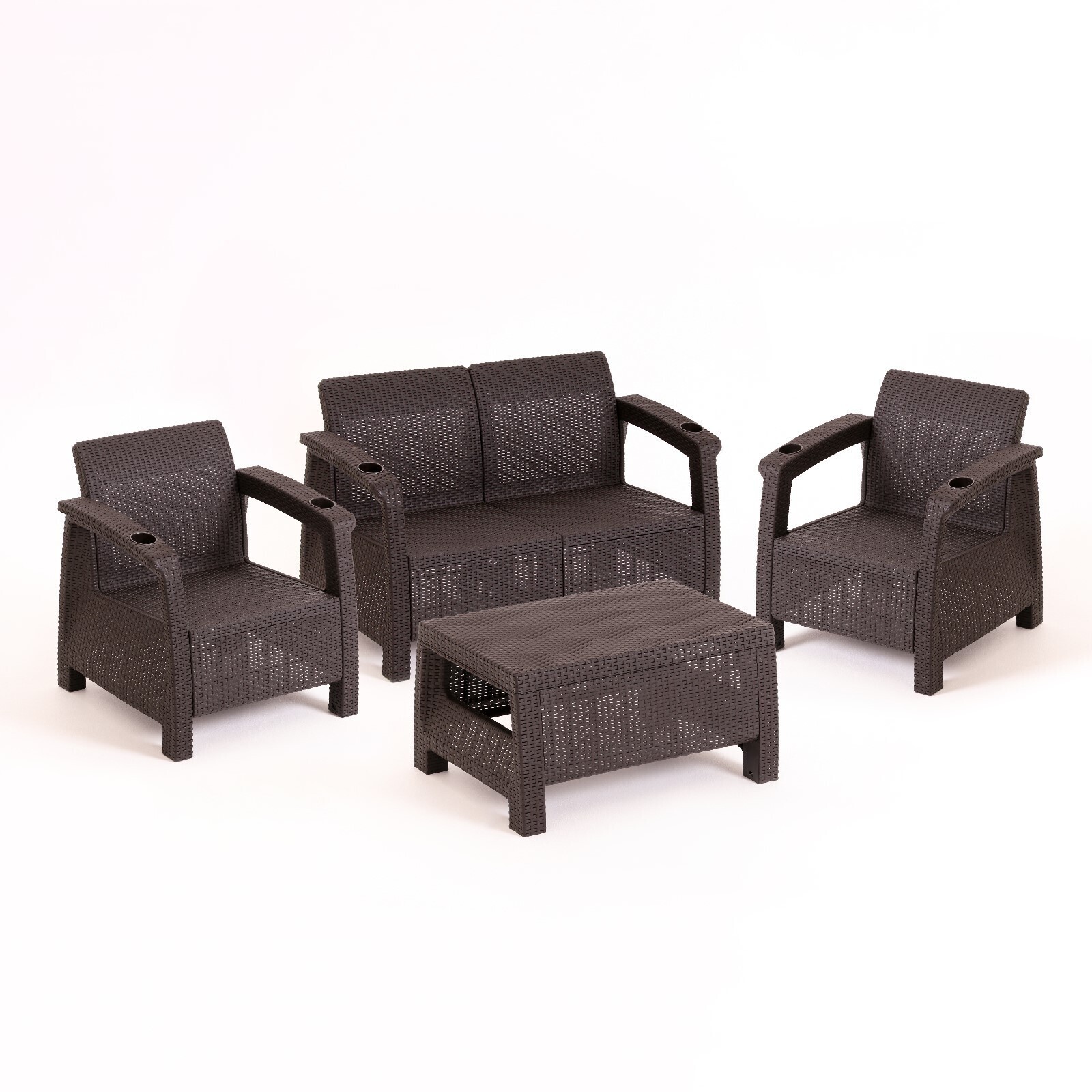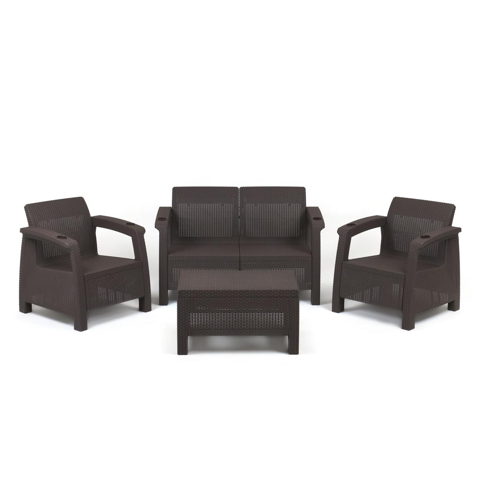 Набор мебели диван двухместный, два кресла + стол, шоколад