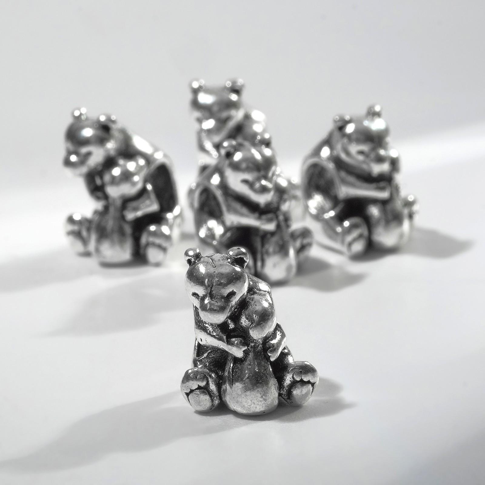 Талисман "Медведь с зайчонком", цвет серебро