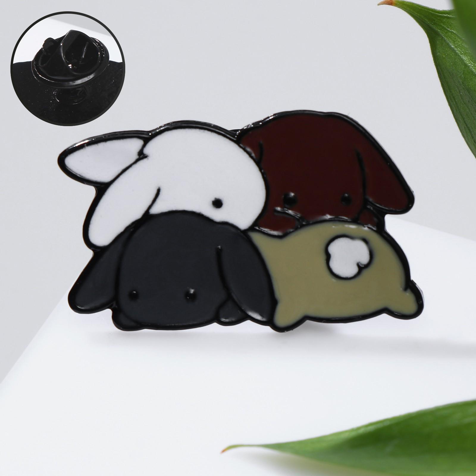 Значок "Зайчата" квартет, цветной в чёрном металле