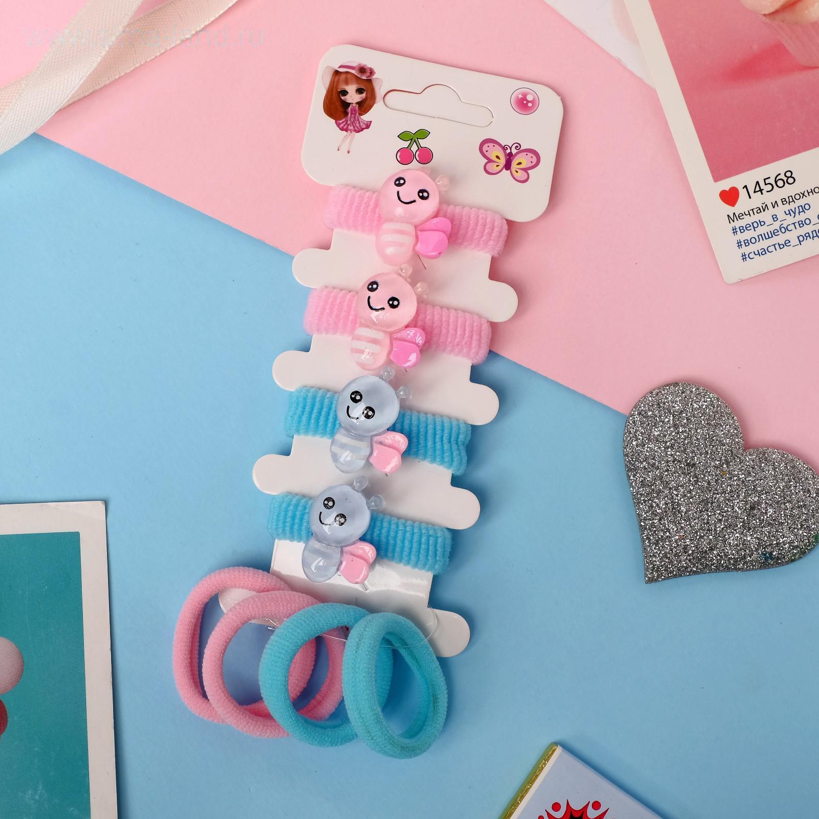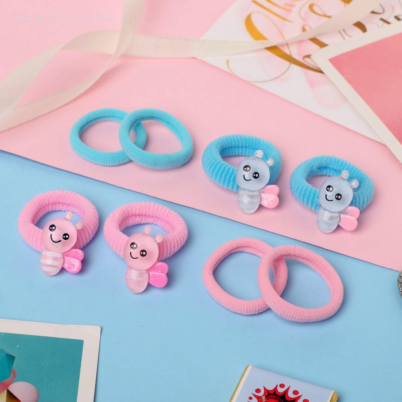 Резинка для волос "Шелли" (набор 8 шт) пчёлки, розово-голубой