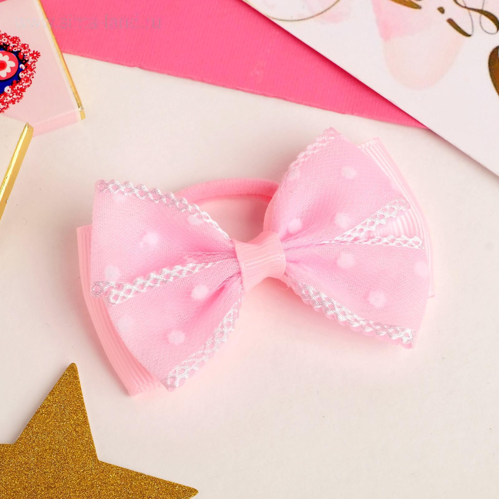 Резинка для волос бант "Маруся" горох, 8,5 см, розовый