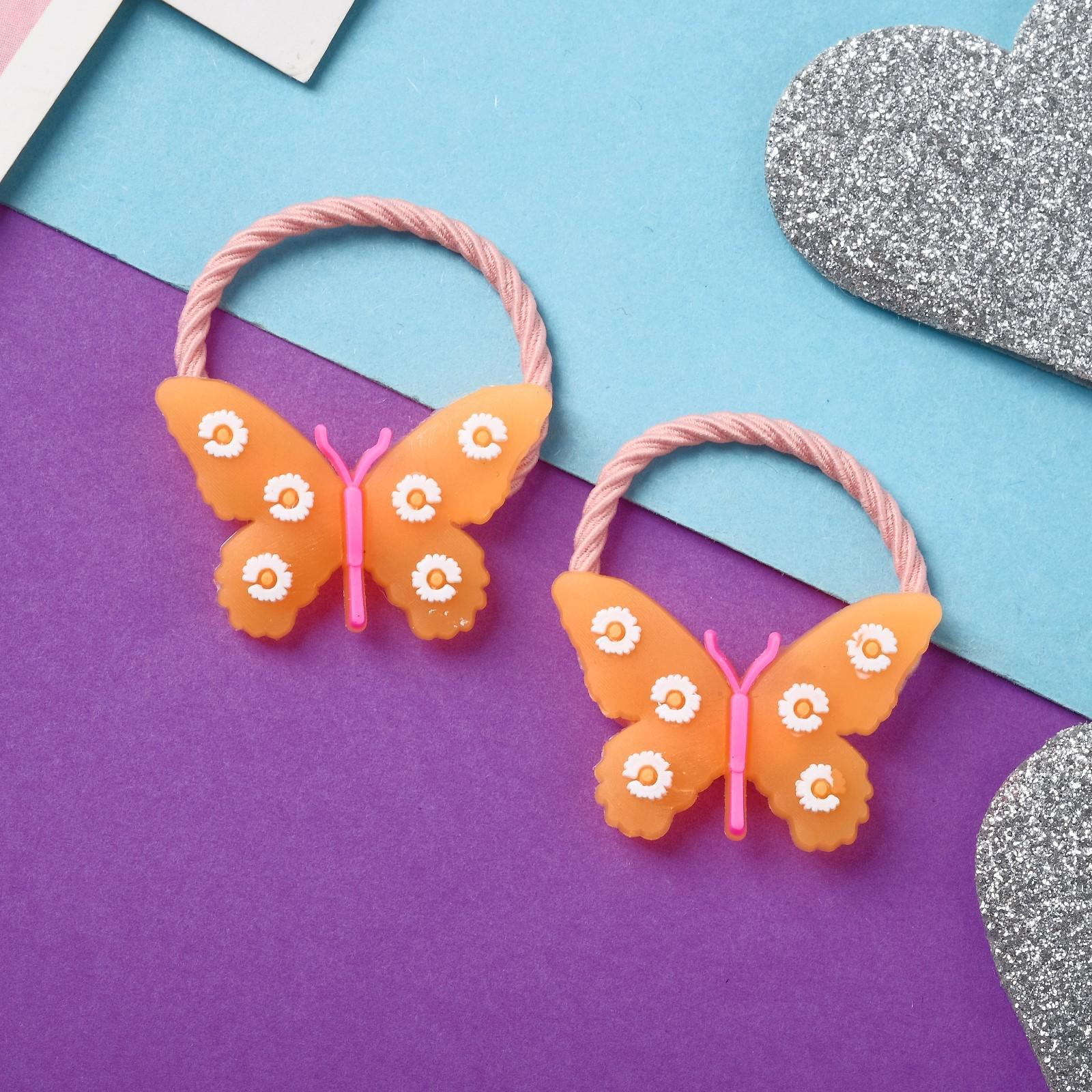 Резинка для волос "Крошка" (набор 2 шт) бабочка цветочек, оранжевый