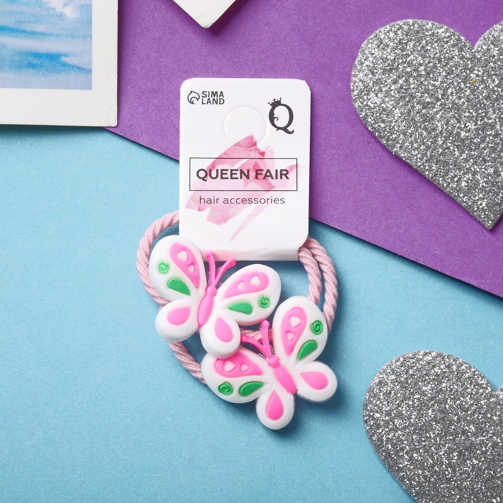 Резинка для волос "Крошка" (набор 2 шт) бабочка сердечки, белый
