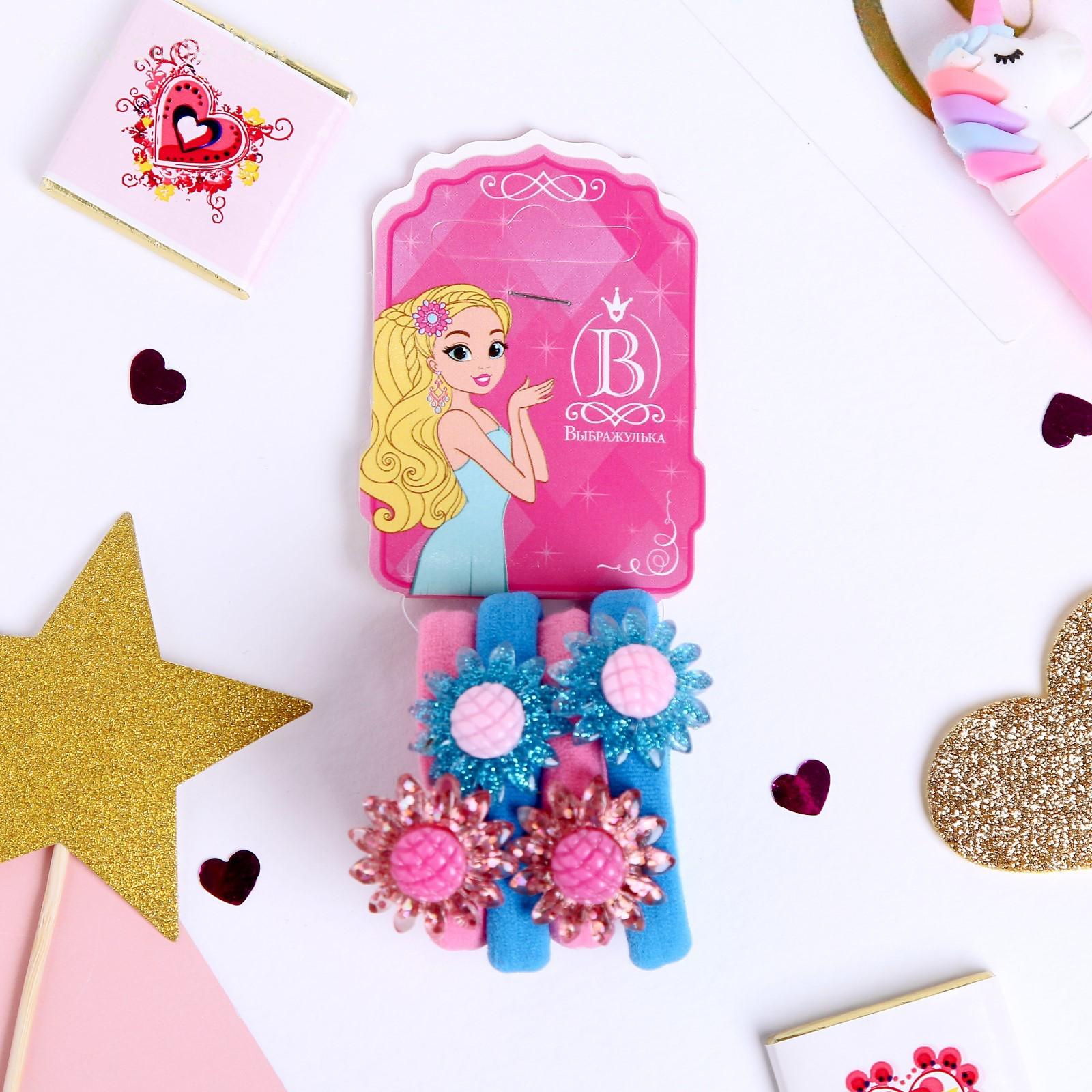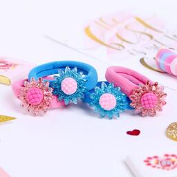 Резинка для волос "Волшебные цветы" (набор 4 шт) подсолнух синий,розовый