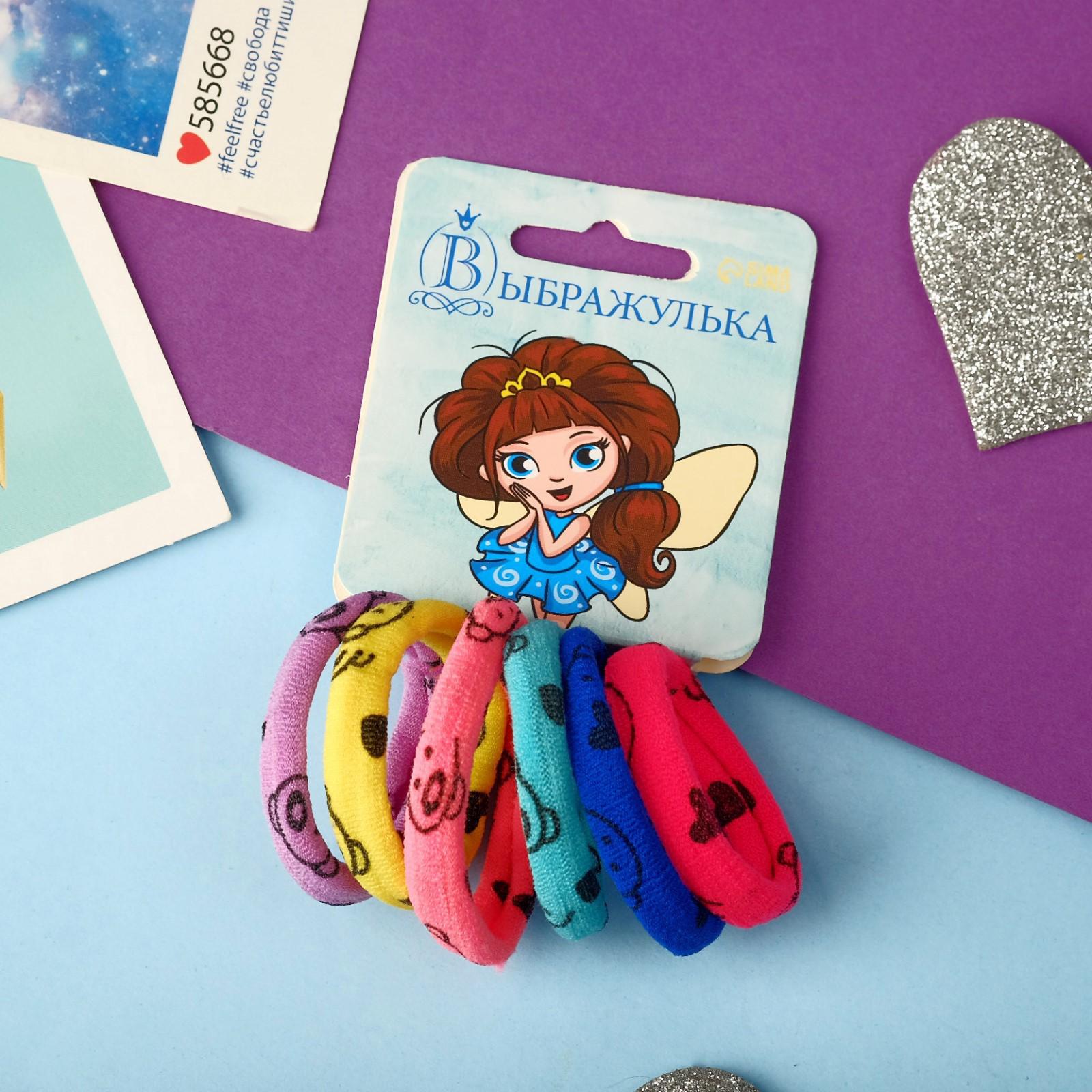 Резинка для волос "Спорт" (набор 6 шт) мордашки, 3,5 см, микс